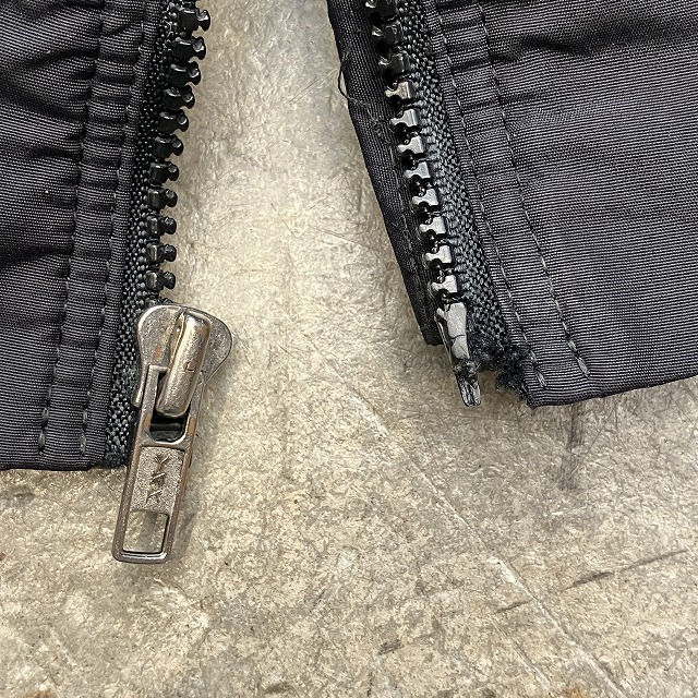 また、フロントメインジッパー下に若干の裂け、襟元付近に焦げ穴がみられます。