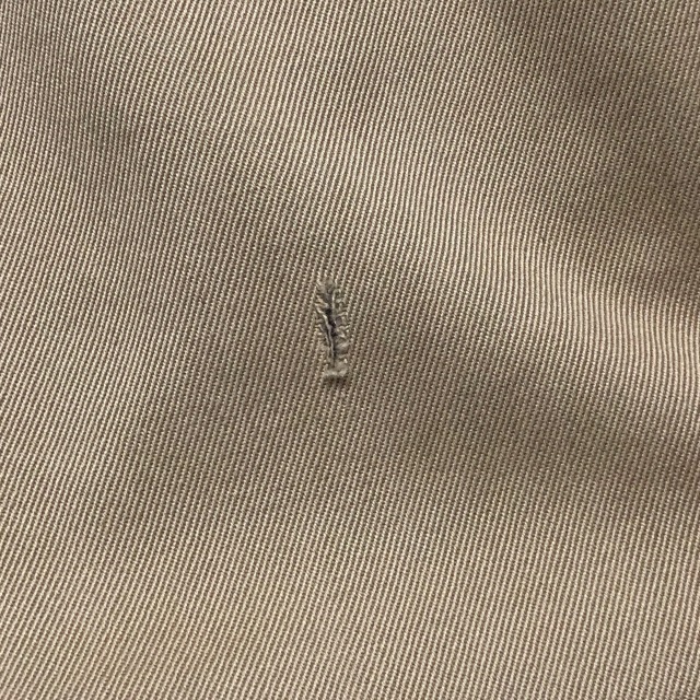 ポケットは両玉縁、センターループオフセット、縫製はダブルステッチです。