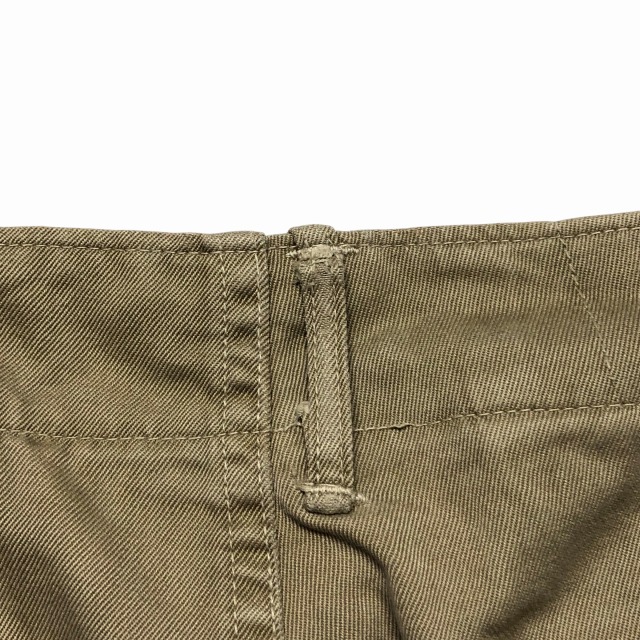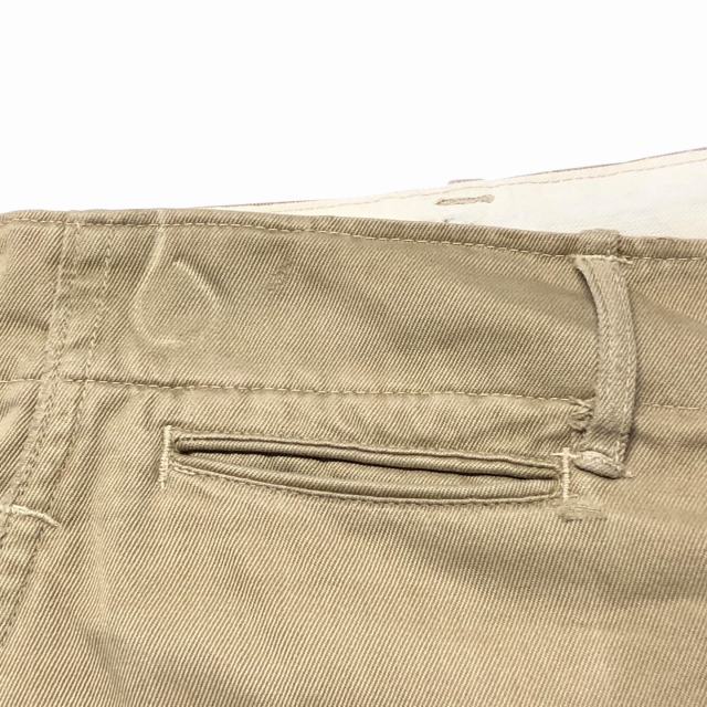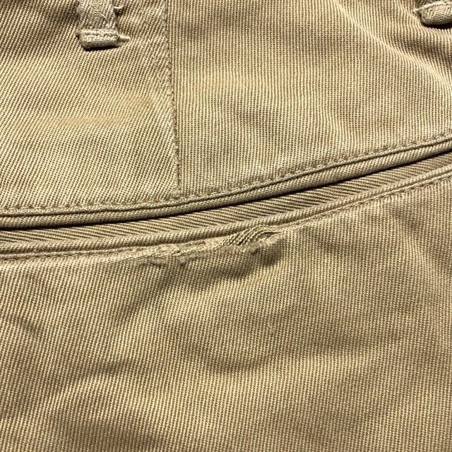ポケットは両玉縁、センターループオフセット、縫製はダブルステッチです。