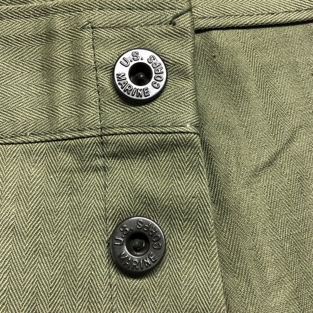 生地はヘリンボーンツイル、ボタンはUSMC刻印入りボタン、