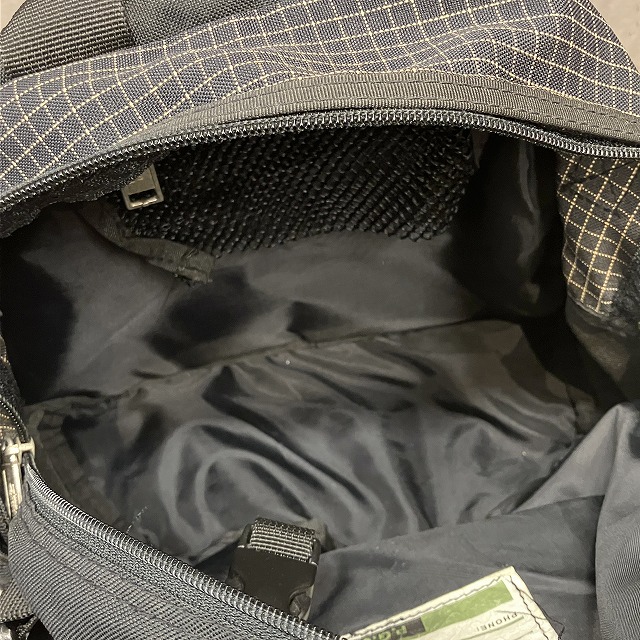 - ストラップ止めのゴム紐の伸びがみられます。また、外側のポケット内に薄汚れがみられます。その他、スレ等の使用感はございますが、ユーズド慣れされた方でしたら、まだまだ問題なく使用していただけます。