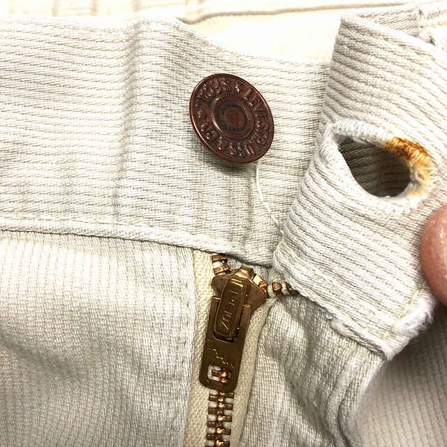 トップボタン裏刻印『無刻印』、均等V、Vステッチ、ウェストシングルと初期のディティールが残る1本です!