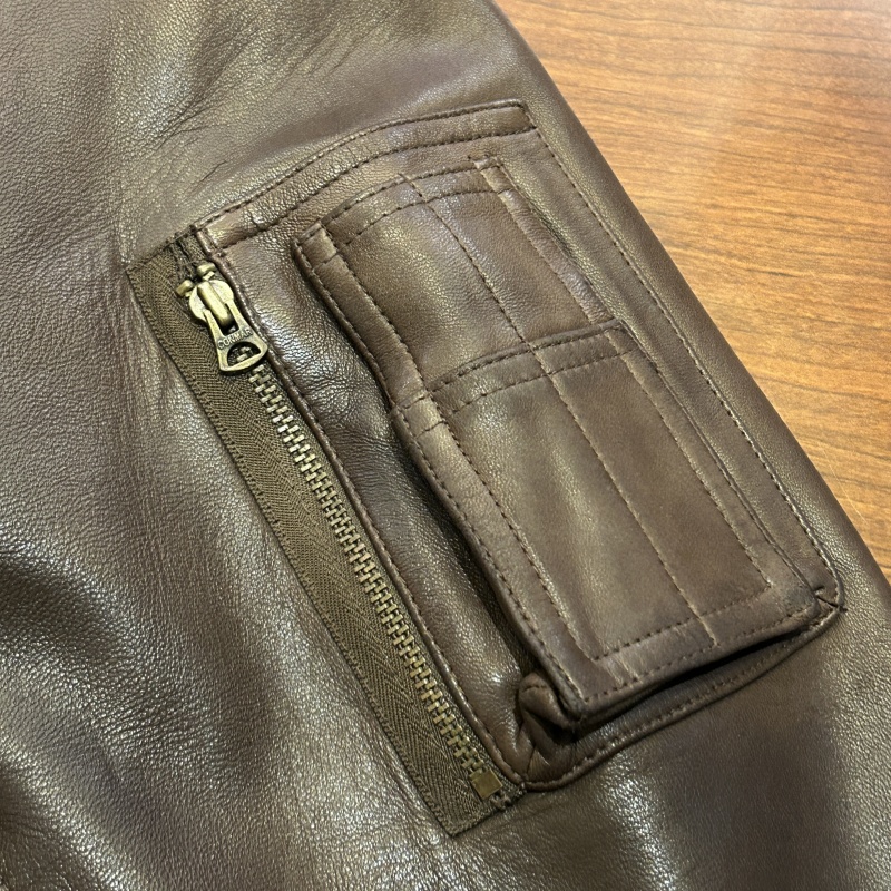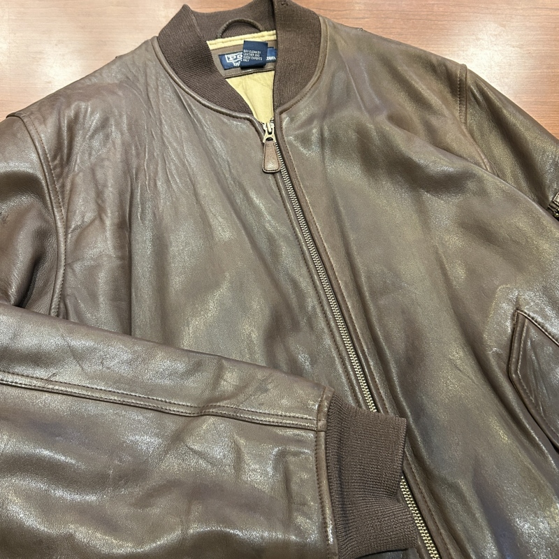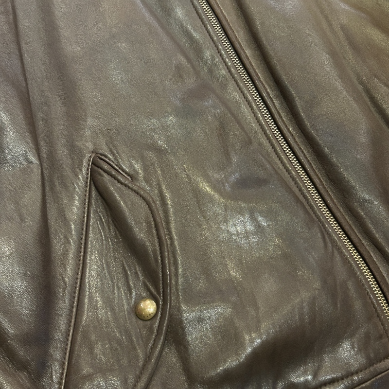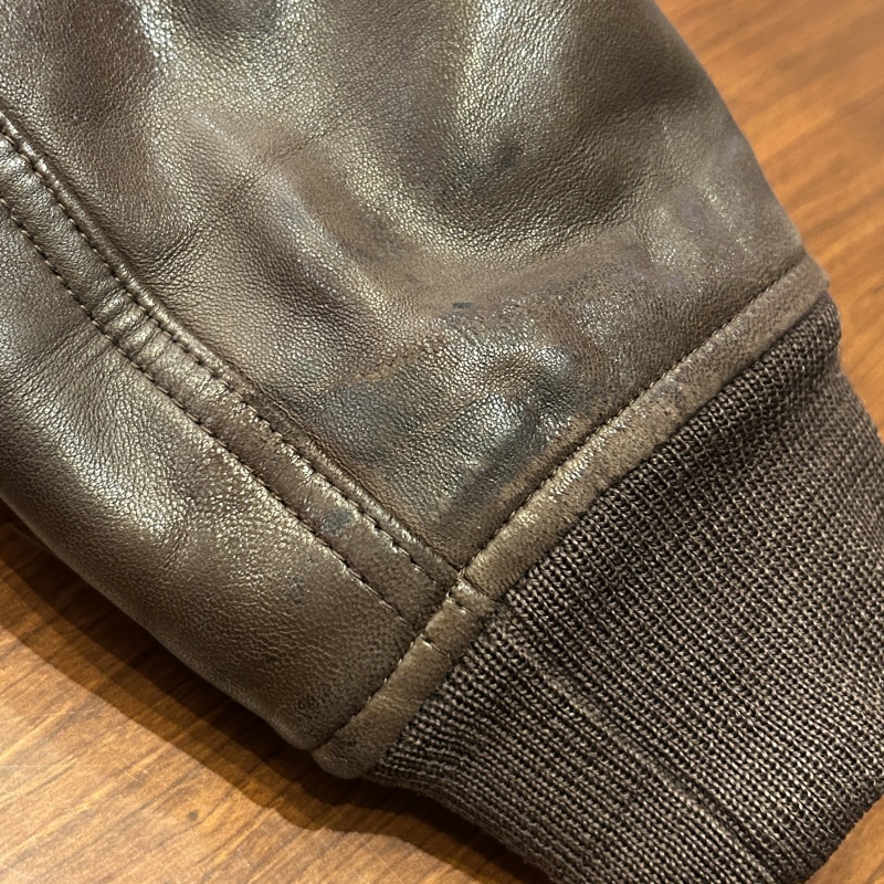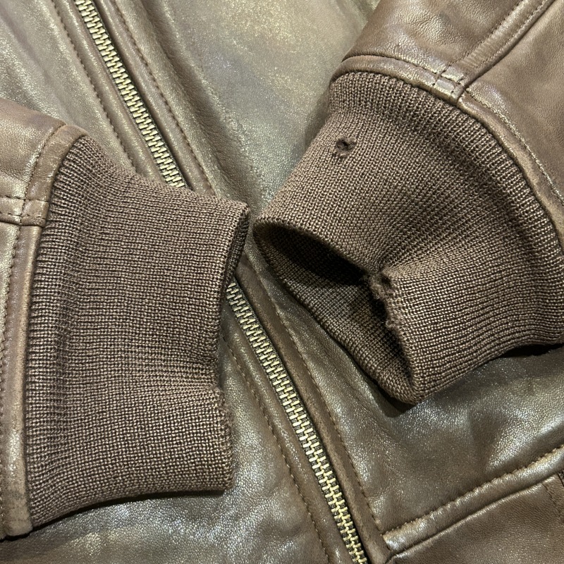 - 襟や袖リブ、右肩付近にダメージがございます。レザー特有の傷やシミ等の着用感がございます。古着慣れされた方でしたら問題無く着用していただける状態です。