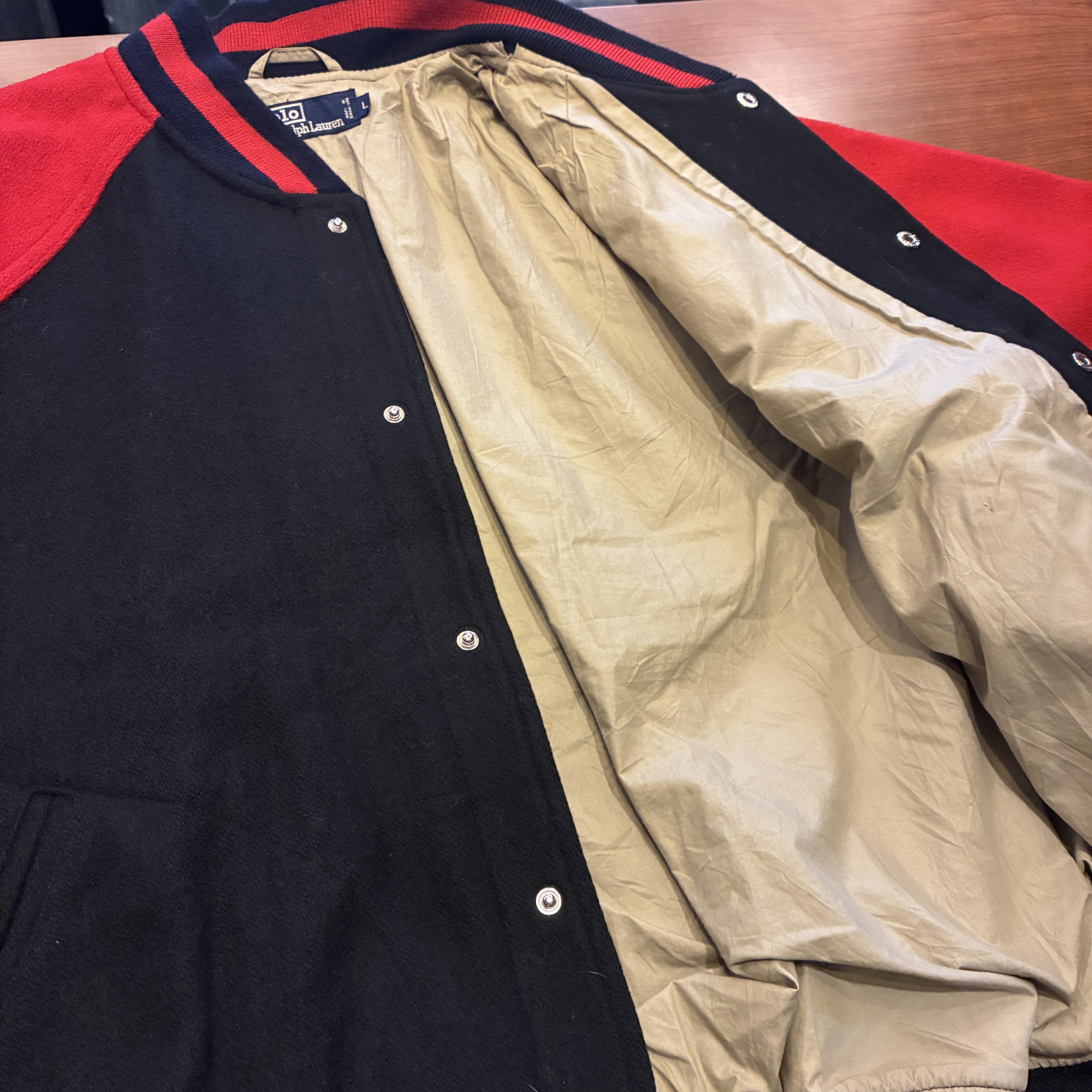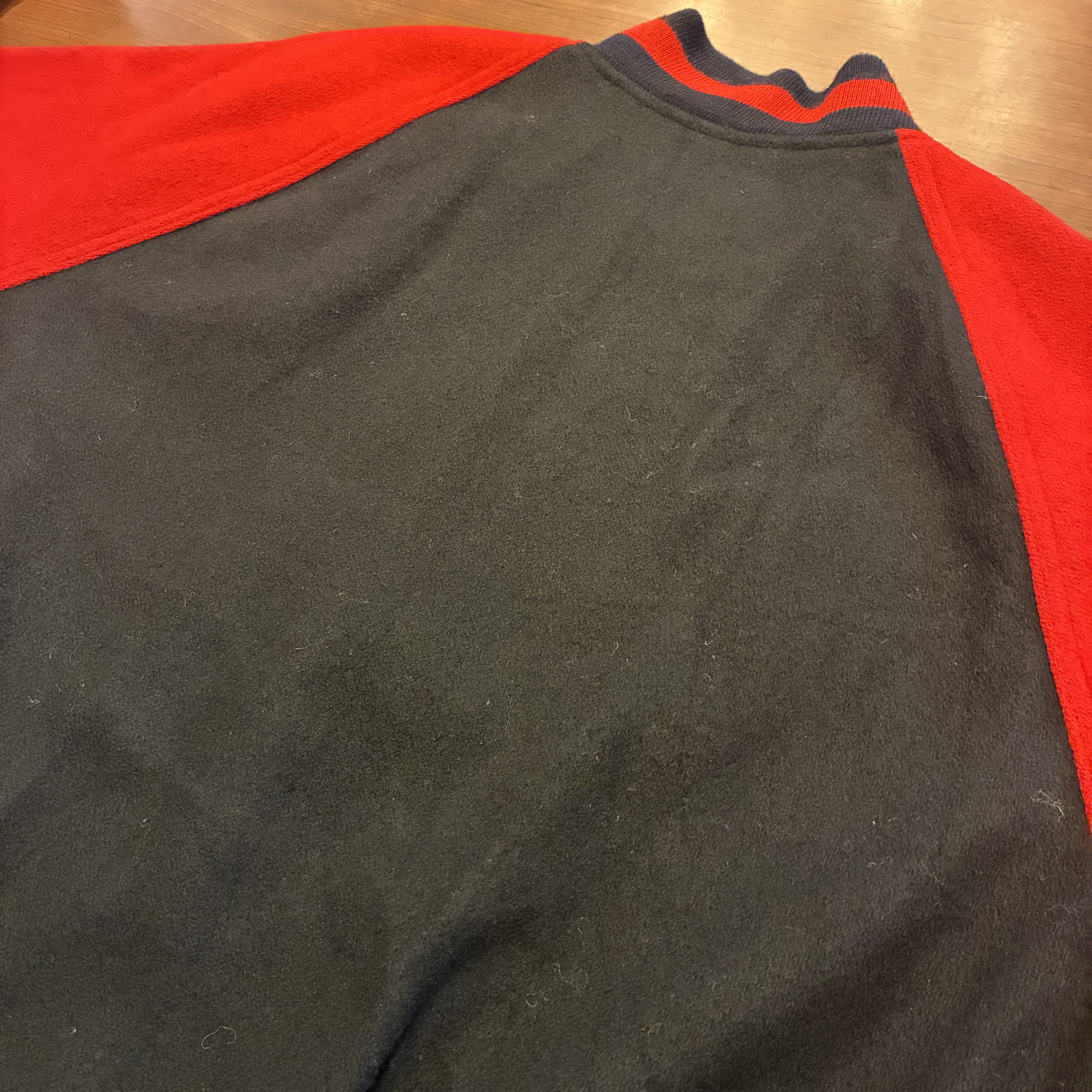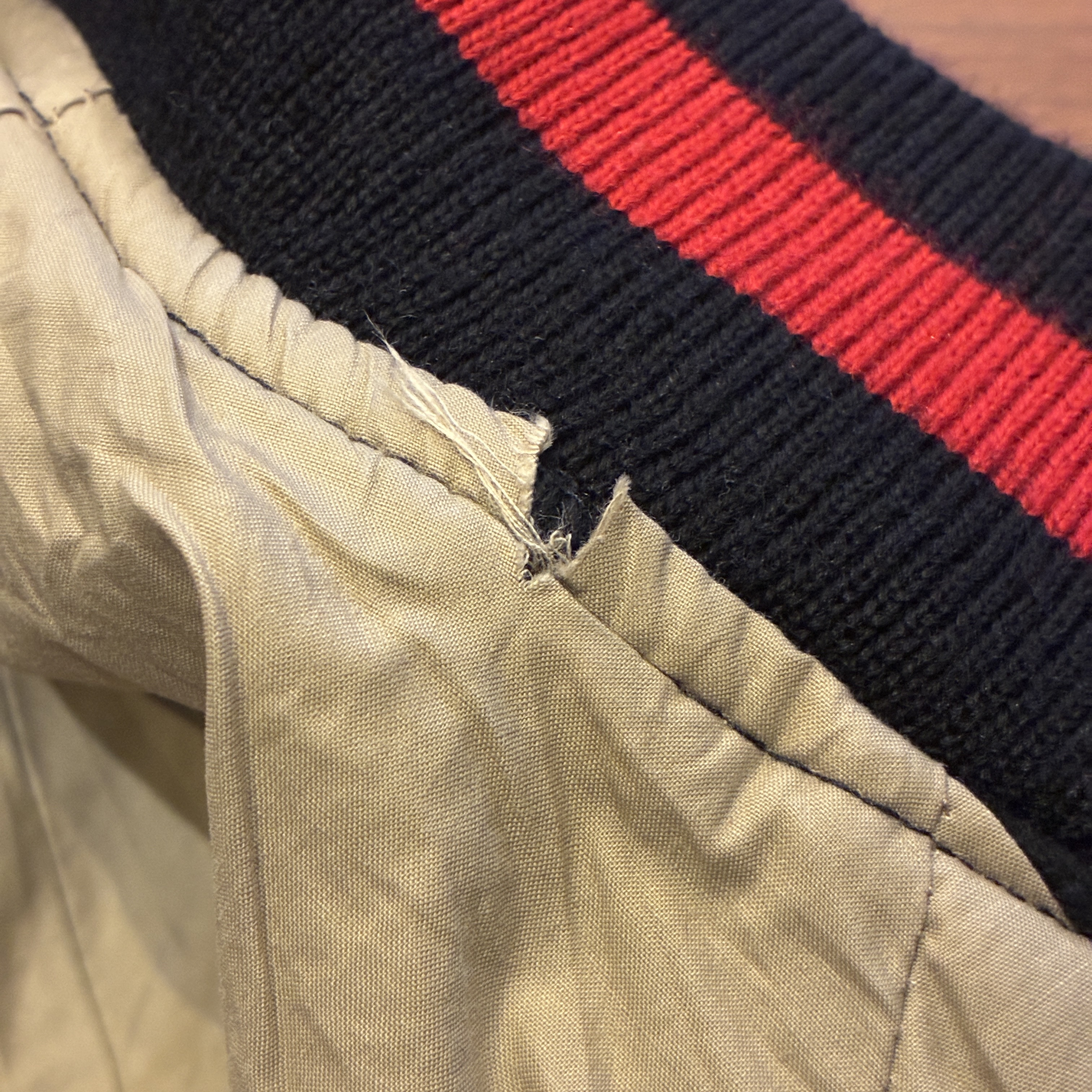 - 袖口に多少の毛羽立ちや、画像の様に内襟の裏地部分が僅かに裂けていたり等が見られますが、目立つ汚れやダメージは無く問題無く着用していただける状態です。