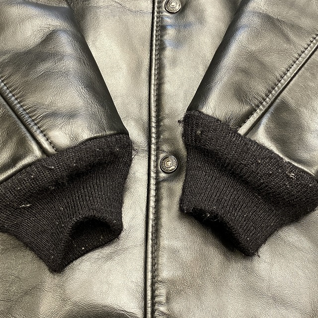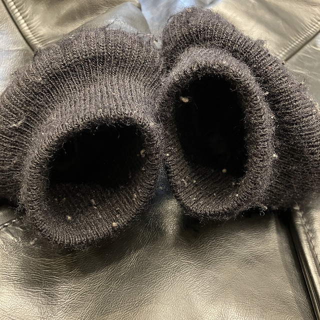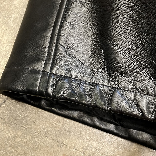 - レザー特有のスレや小傷、シワが見られます。また、襟や、袖先に毛玉、毛羽立ちがみられます。