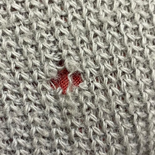 - 画像のように、汚れ、毛玉があり、袖に糸ツレや穴がございます。