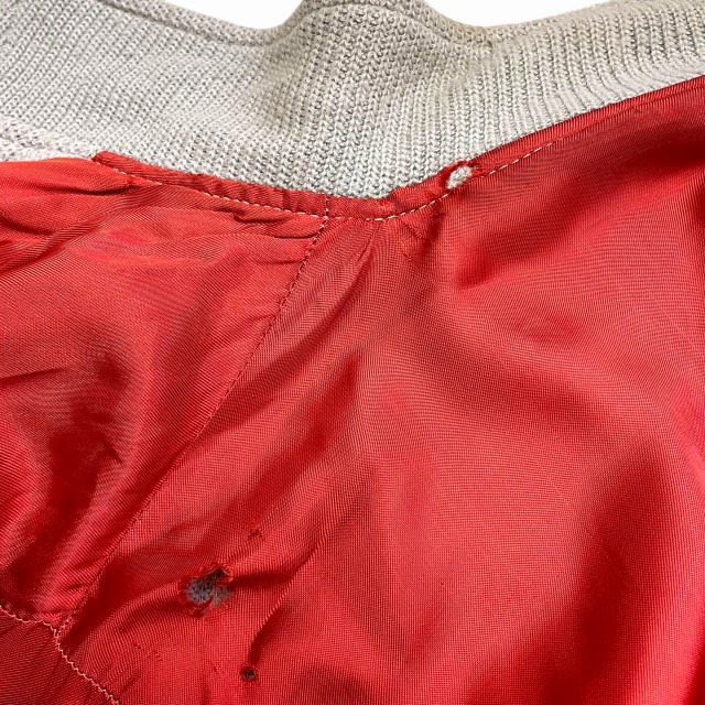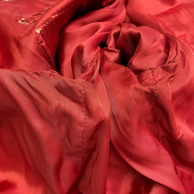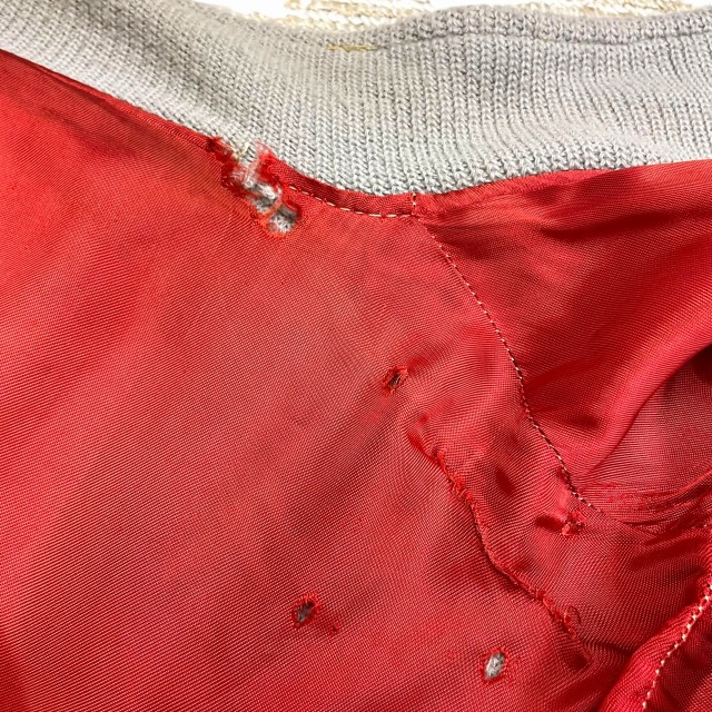 裏地に破れ、汚れ、手縫いで簡易的なリペアがございます。