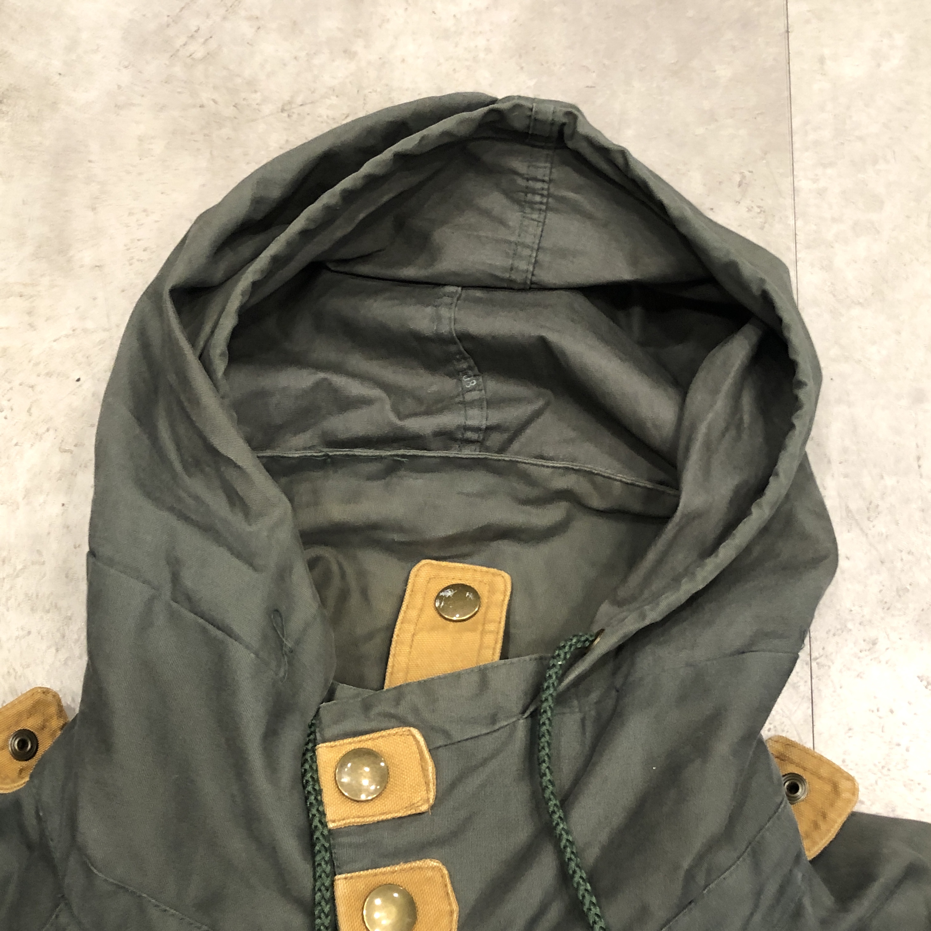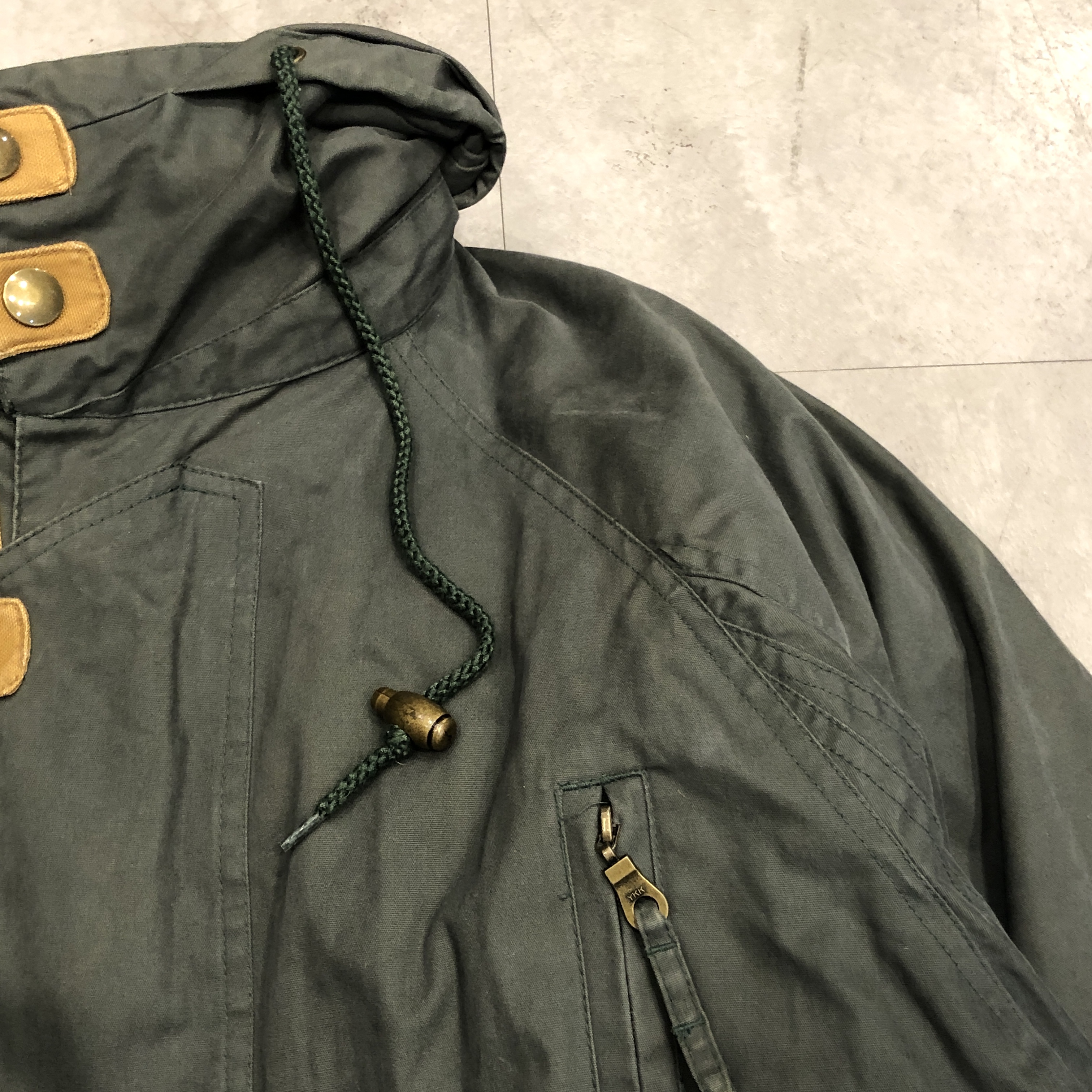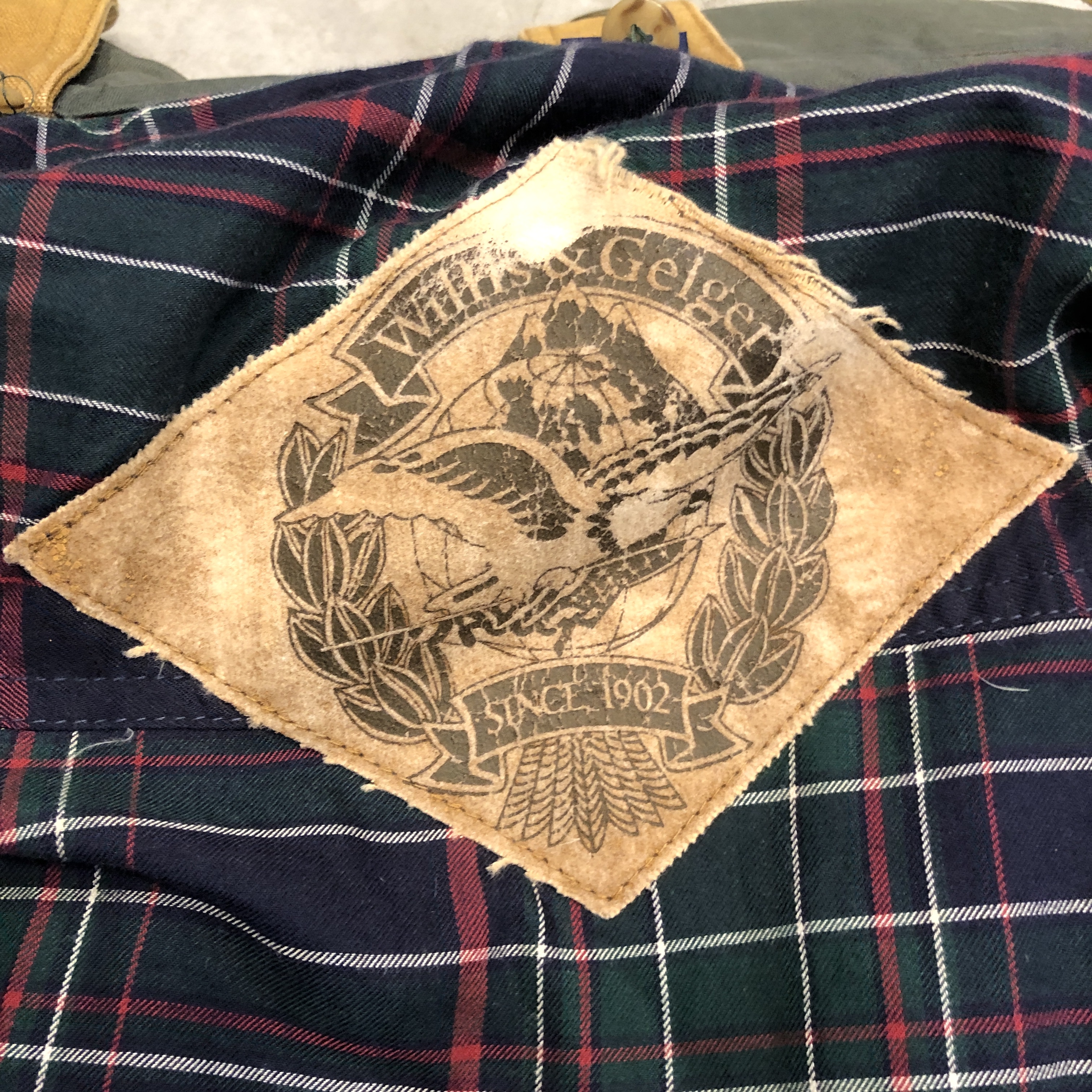 - アメリカ古き良きアウトドア文化の象徴、1902年創業の名門 WILLIS & GEIGER が手掛ける希少な“2WAYフーデッドジャケット”のご紹介です。本体のコットンシェルに象徴的なタンレザーパッチが配された武骨で味わい深い佇まいと、名だたる冒険家たちが愛した同ブランドらしい“ギアとしての服”の迫力が漂う一着。深いオリーブのボディに大容量フラップポケット、ドローコード、比翼のボタンワークなど、すべてが実用本位に設計されています。更に“2WAY構造”の仕組みになっており、内側には単体で着用可能なバーガンディの80%ダックダウン×20%フェザーの中綿キルティングライナーが備わり、象徴的なタータンチェック裏地、そして袖のワッペンが存在感を放つ軽快なダウンジャケットとしても十分成立する完成度です。本体+ライナーで冬まで対応する重衣料、ライナー単体でライトアウター、アウター単体で春秋のフィールドジャケットとして、まさに“三役”をこなす万能アウターであり、BarbourやFilson、Eddie Bauerなどクラシックなアウトドアギアが好きな方には特に響くはず。ヴィンテージW&Gの中でもここまで実用性の強い個体は多くなく、ブランドの真髄である“本物の道具としてのウェア”を味わえる逸品です。