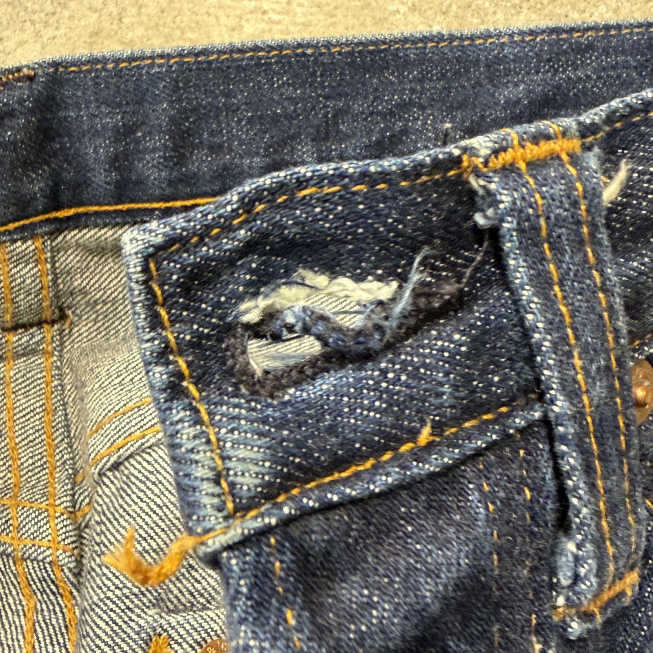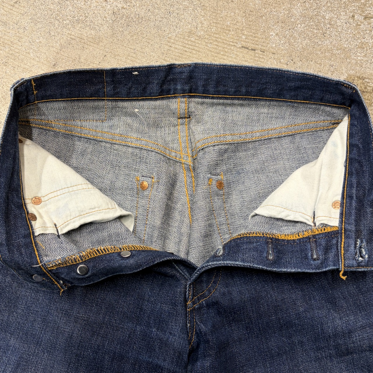 - 一部アタリや股部分のスレ等特有の着用感が御座います、普段から古着を着用される方でしたら問題の無いコンディションです。
