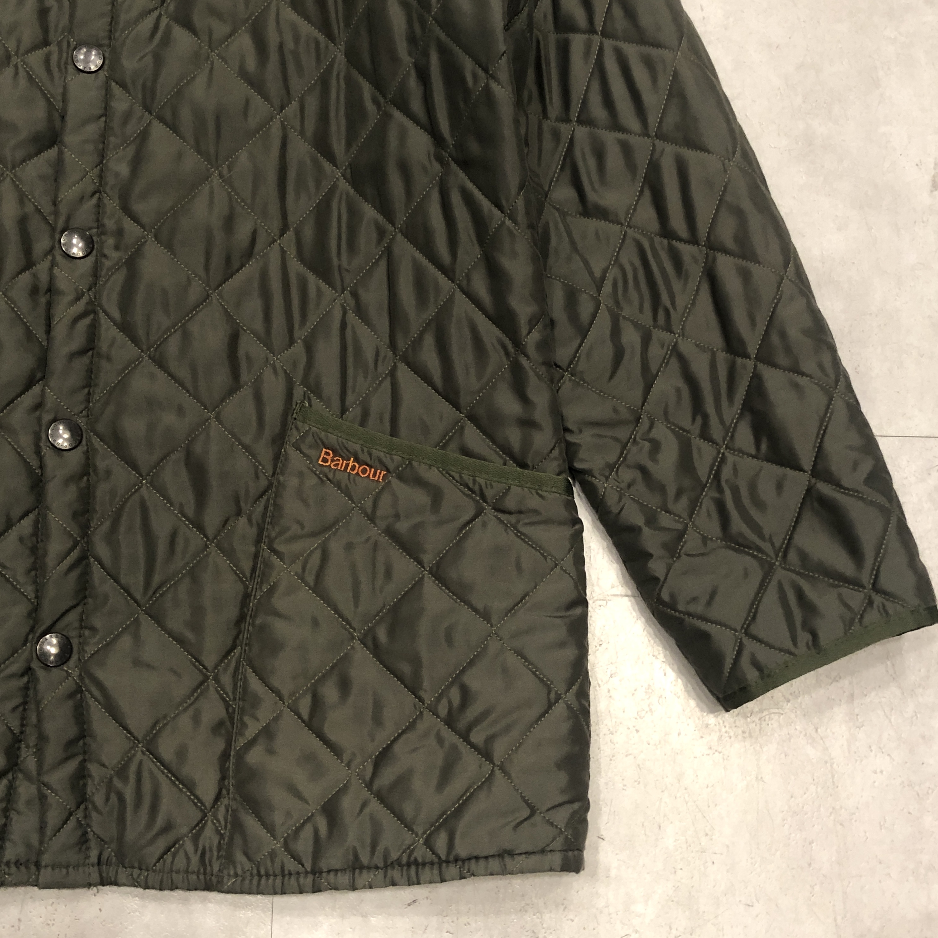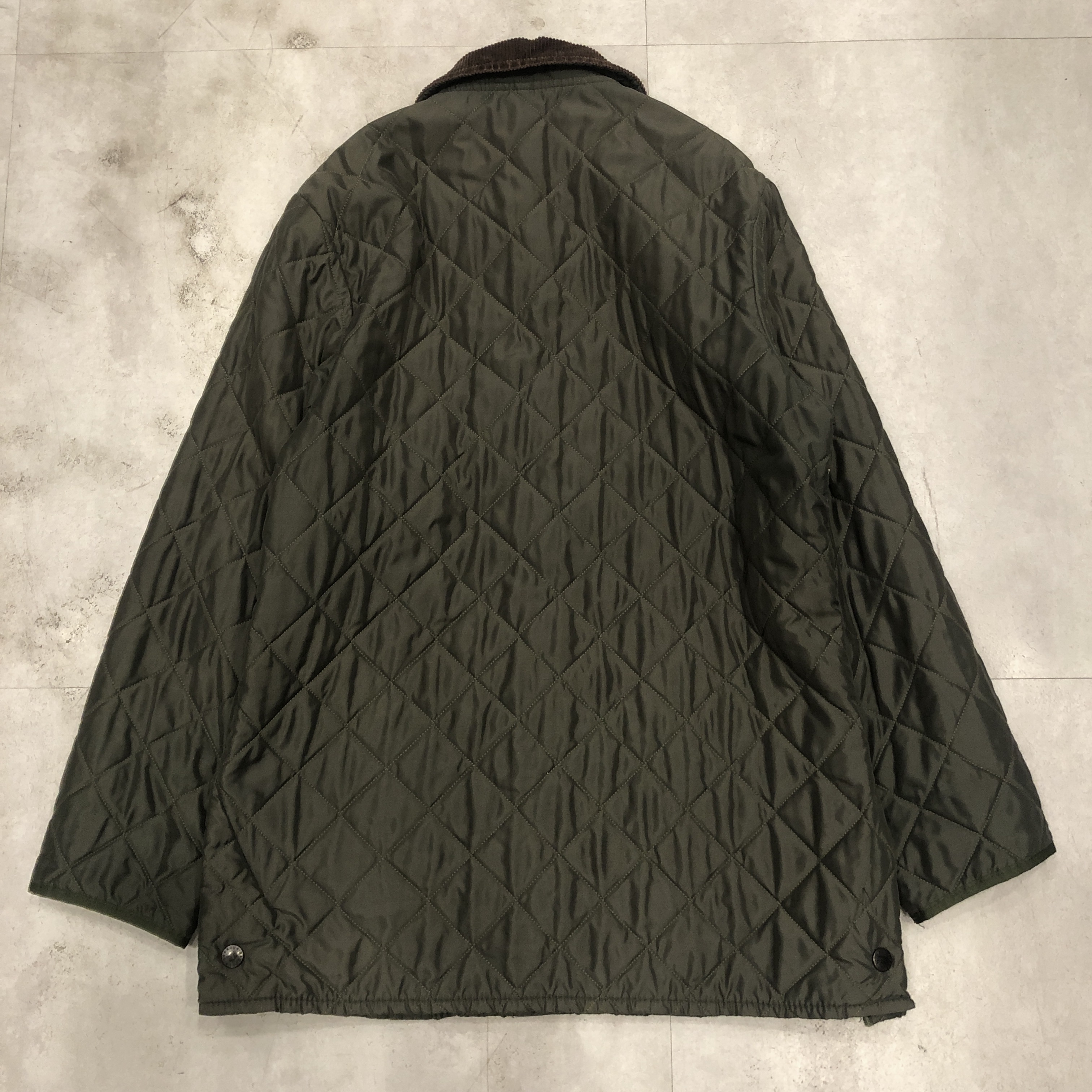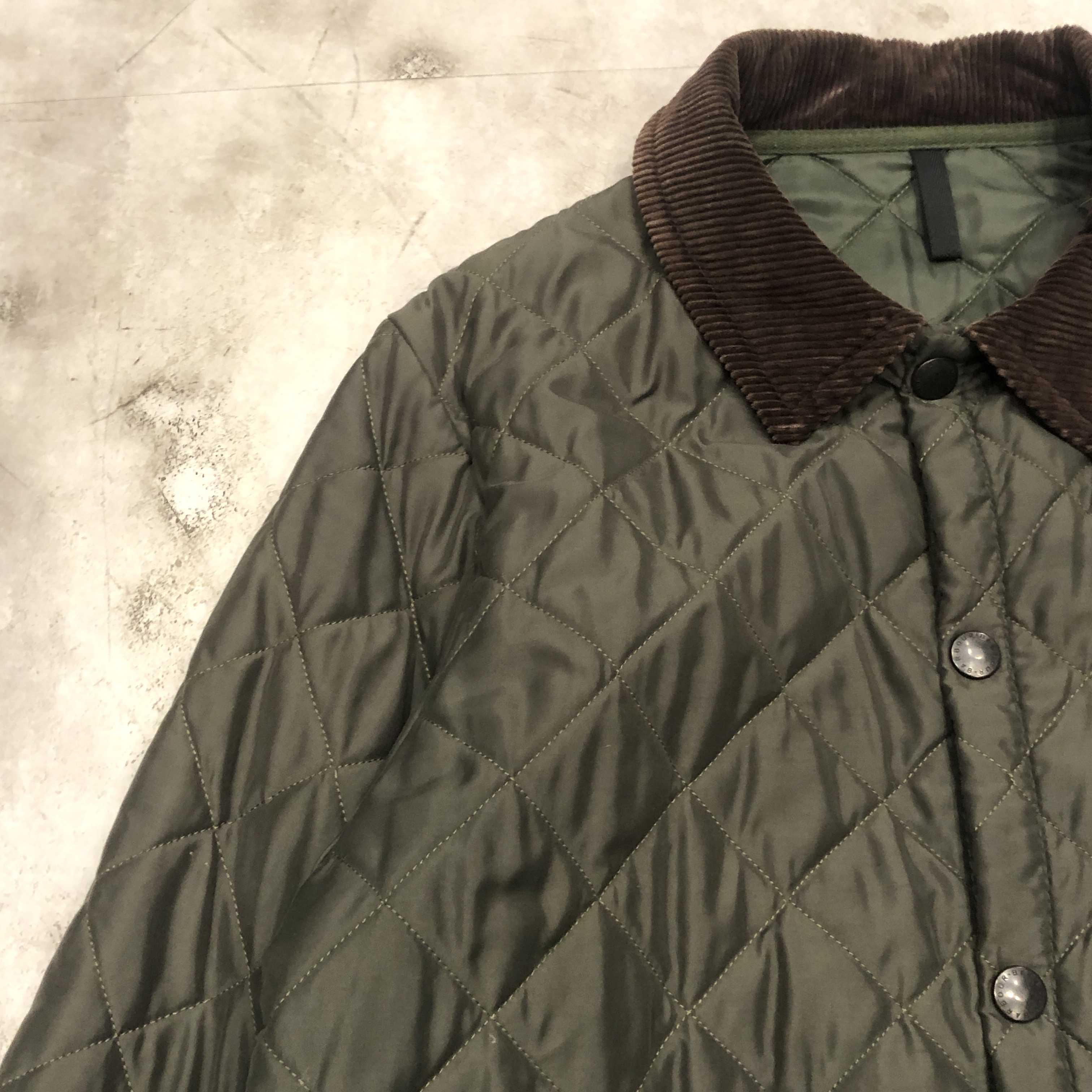 まず目に入るのは、Barbour ならではの“深みのあるオリーブ”。現行には出せない、あの“くすみ感”と“落ち着いた艶”がちゃんと残っているのがポイント。