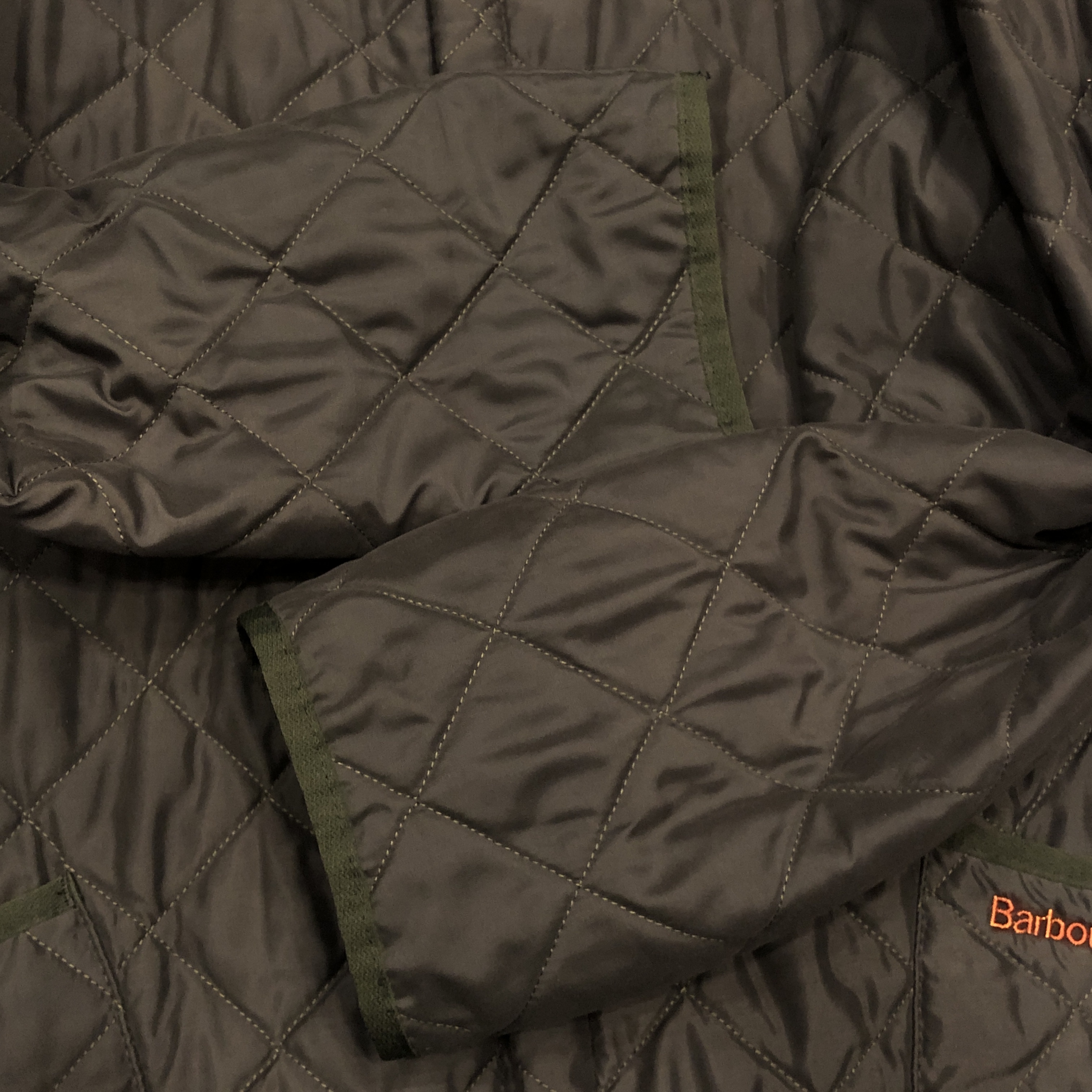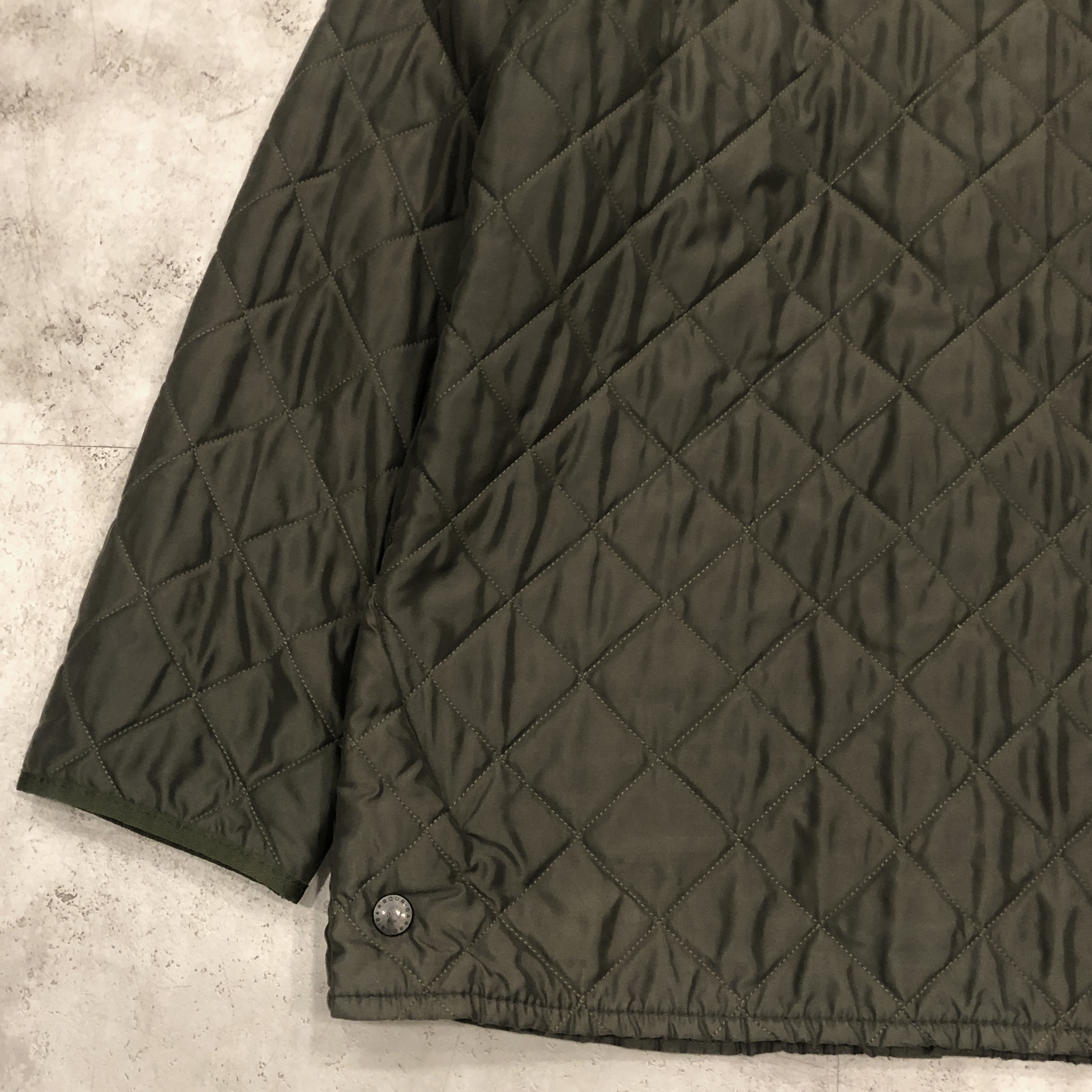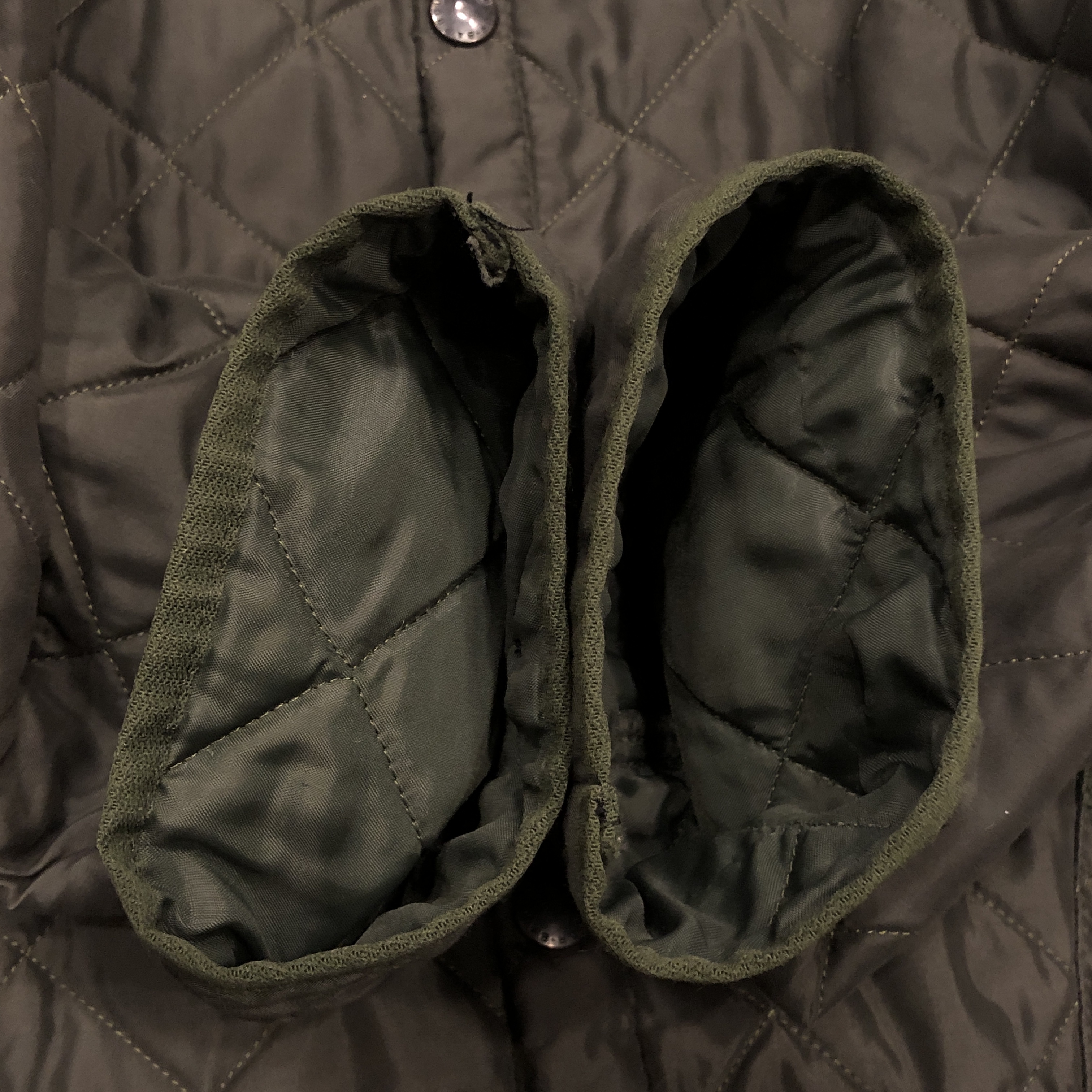 まず目に入るのは、Barbour ならではの“深みのあるオリーブ”。現行には出せない、あの“くすみ感”と“落ち着いた艶”がちゃんと残っているのがポイント。