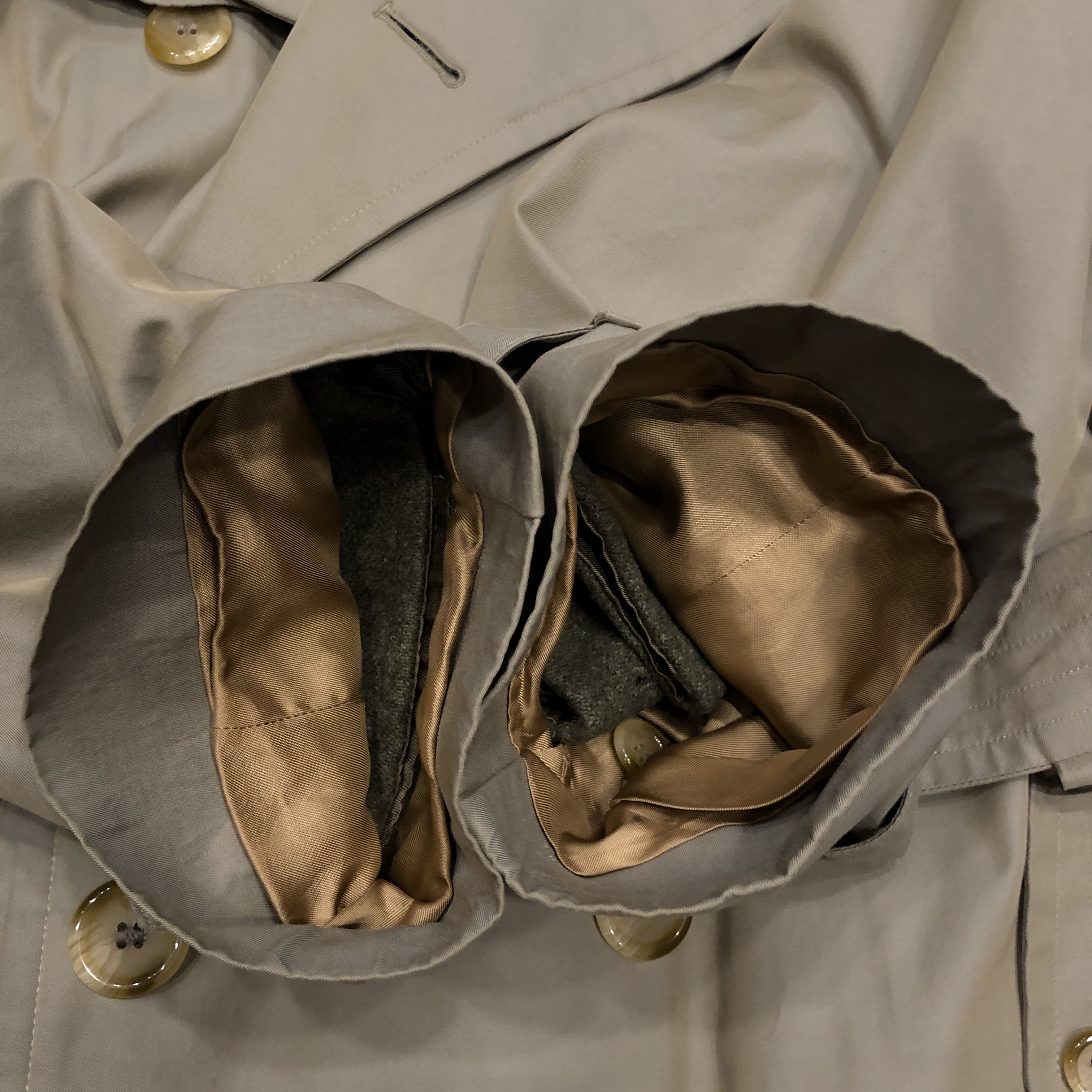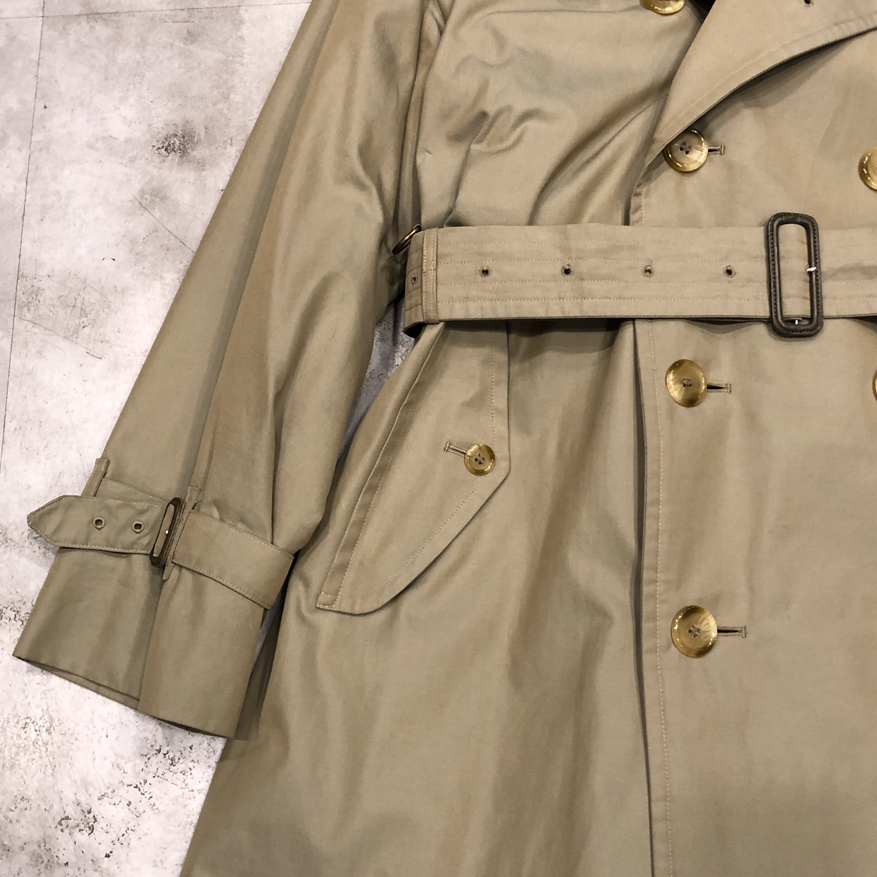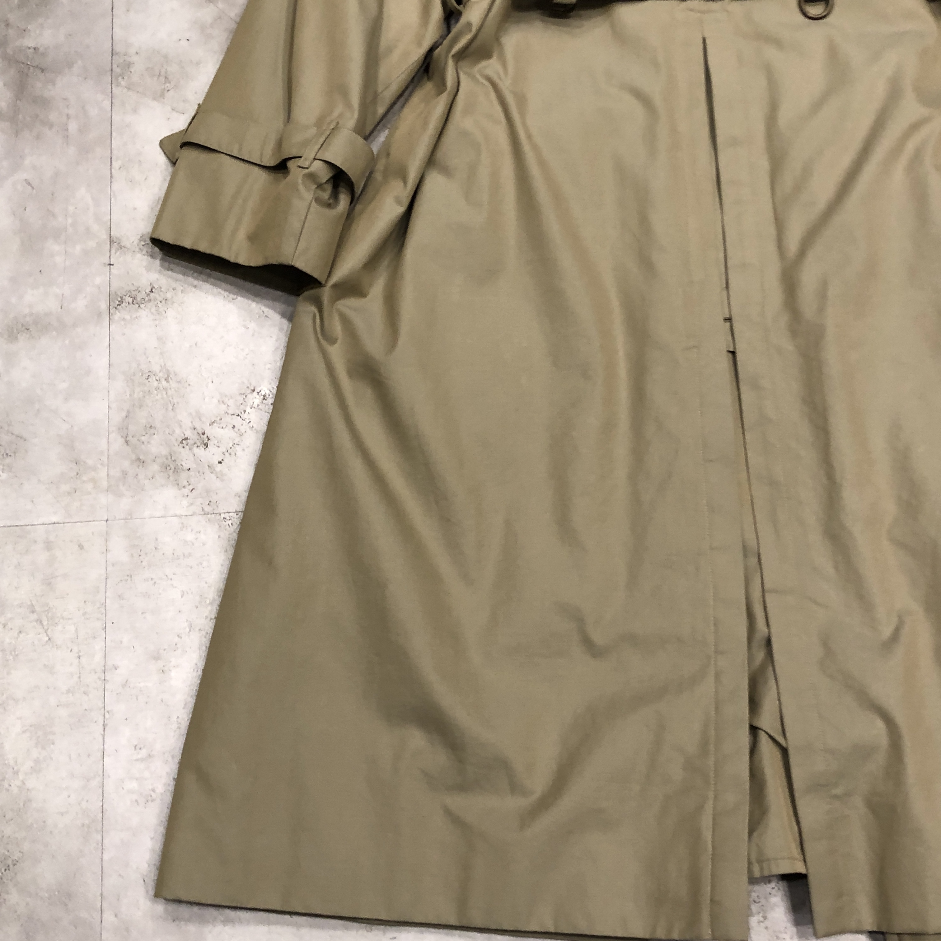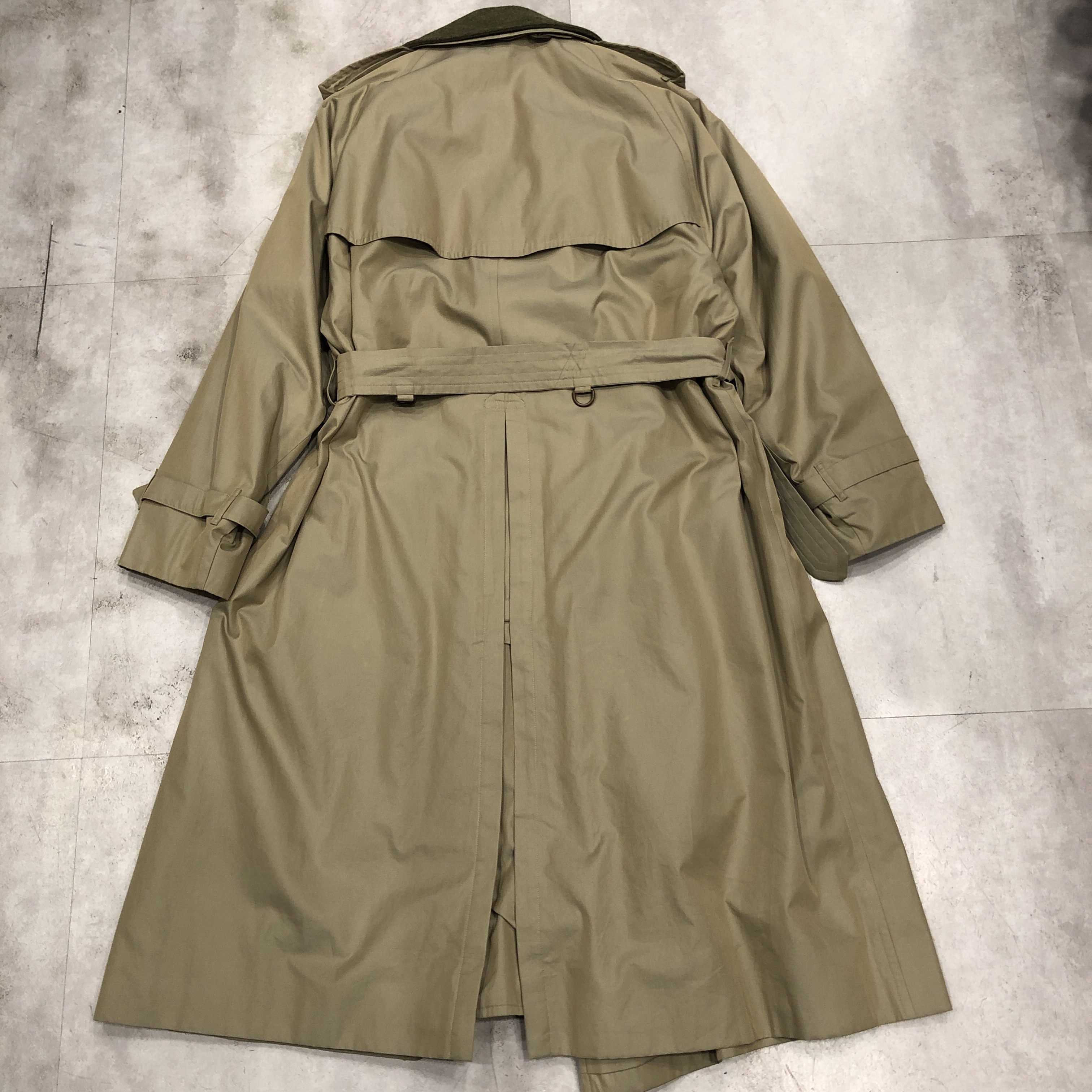 トレンチコートの原点である軍仕様のディテール(エポレット・ガンパッチ・Dリング・深めのインバーテッドプリーツ)を完備しながら、贅沢なウールライナーが付属した “完全体” と呼べる個体、しかも54 Long表記が示す通り長身の英国紳士向けに仕立てられた希少ラインで、サイズ・年代・状態の三拍子が揃った、ビンテージBurberrysの真髄を堪能できる一本です。探されていた方、この機会にぜひ。
