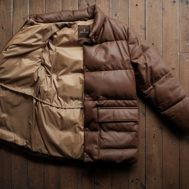 出回っている数が極端に少なく所謂レアアイテムとされているレザー個体のご紹介です。ディテールはモンクレールの銘品PARISに似ており、フードが元から付かないのが違いとなります。