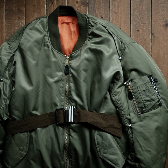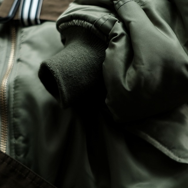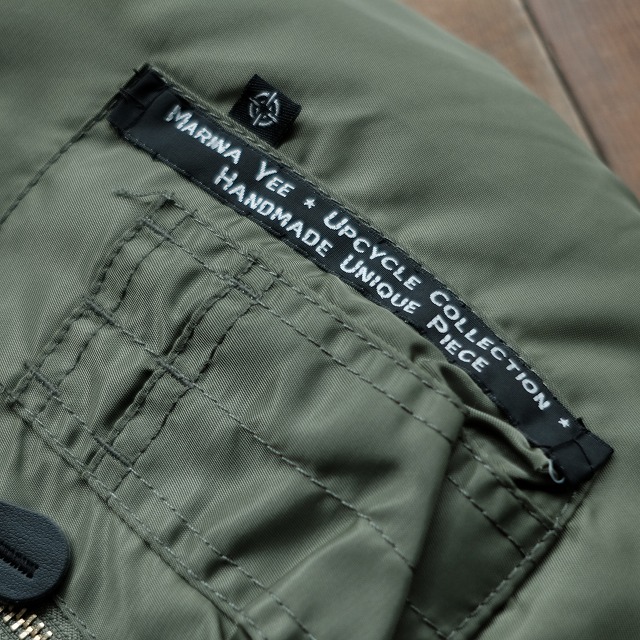 実物のMA-1をアレンジした逸品となり、シガーポケット横のビーズや摘んで作られた袖先。