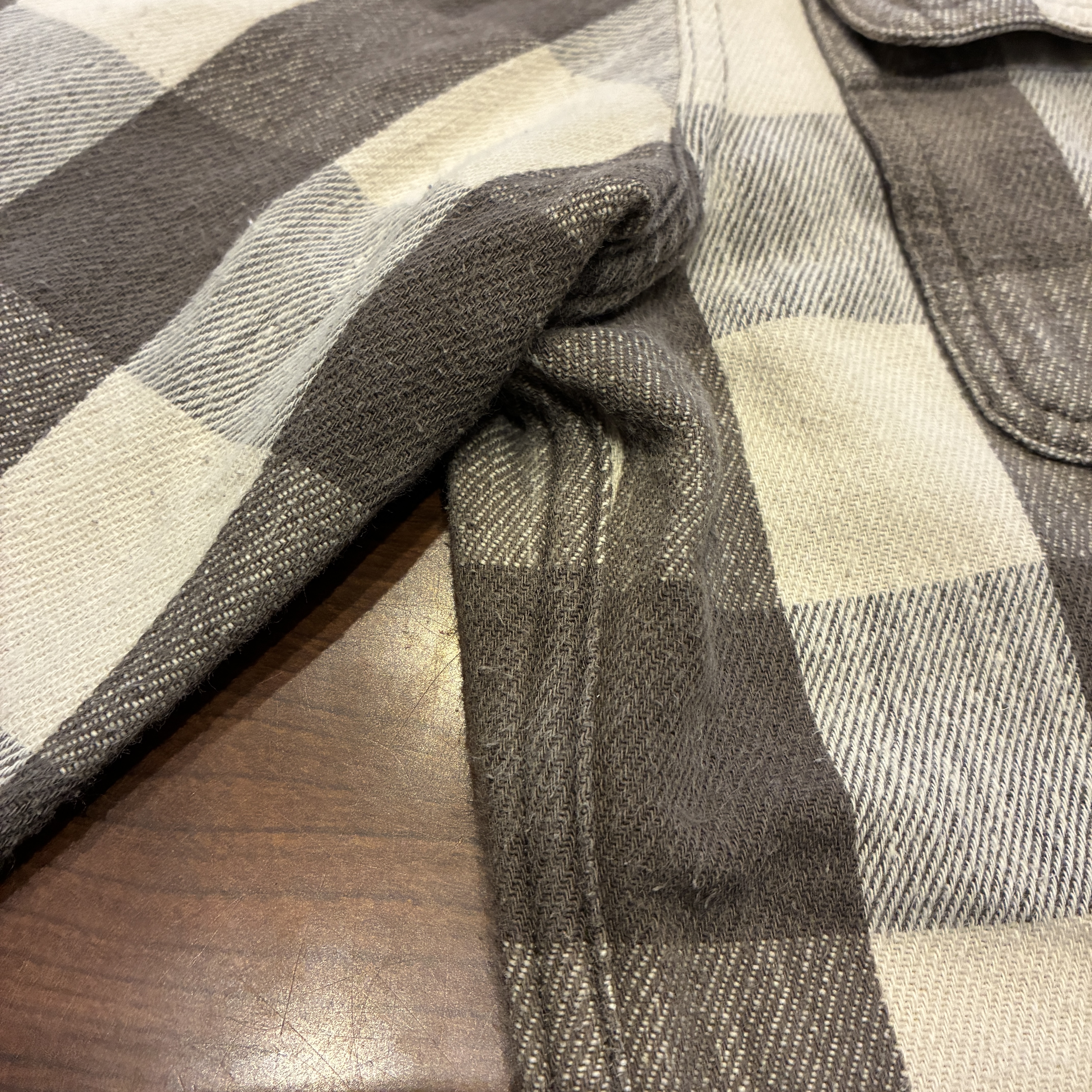 - 生地特有の毛羽立ちや洗濯縮み、多少の色抜け等の着用感がございますが目立つダメージ等は無く、まだまだ問題無く着用していただける状態です。