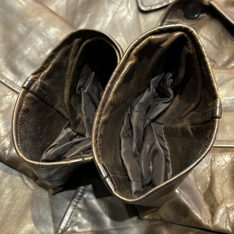 - レザー特有の傷やシワ等の着用感がございますが、その他に目立つダメージ等は無く、まだまだ問題無く着用していただける状態です。