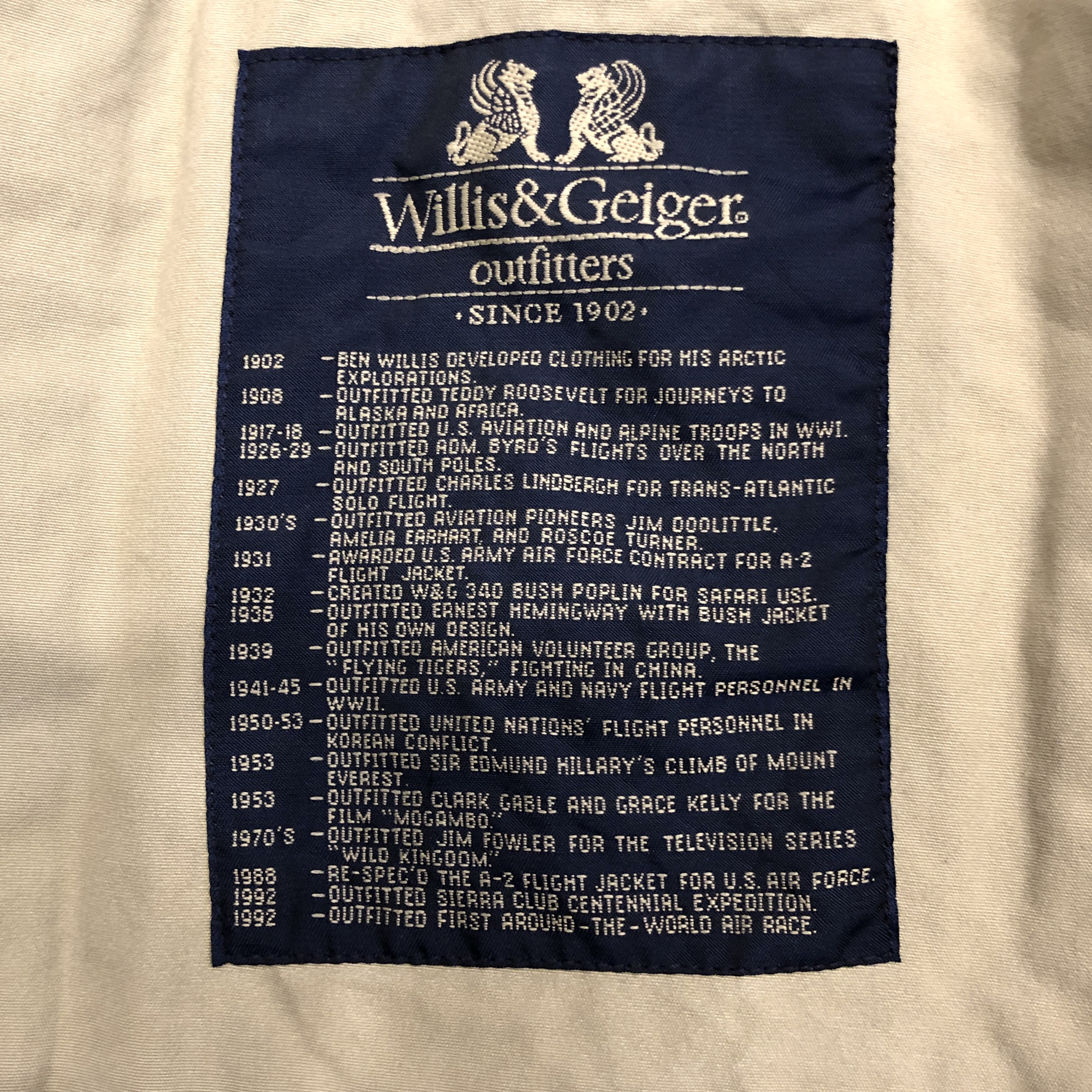 - WILLIS&GEIGERというブランド名が持つ響きだけで、冒険者の血が騒ぐ。1902年創業の老舗アウトフィッターが、世界中の探検家・冒険家・アウトドアズマンのために生み出したのが、まさにこの“ヘミングウェイ・ジャケット”。その名の通り、ノーベル文学賞作家・アーネスト・ヘミングウェイのために設計されたフィールドウェアであり、アフリカ・サファリやアマゾンの密林、北米の山岳地帯など、過酷なフィールドで信頼され続けた本物の一着です。
