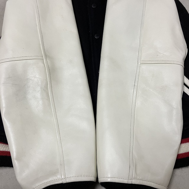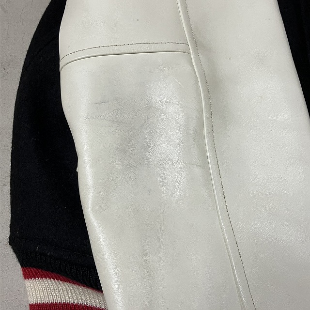 - 襟元にシミ汚れ、両袖に素材特有のスレや小傷汚れがみられます。