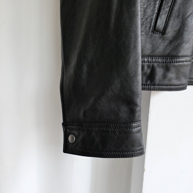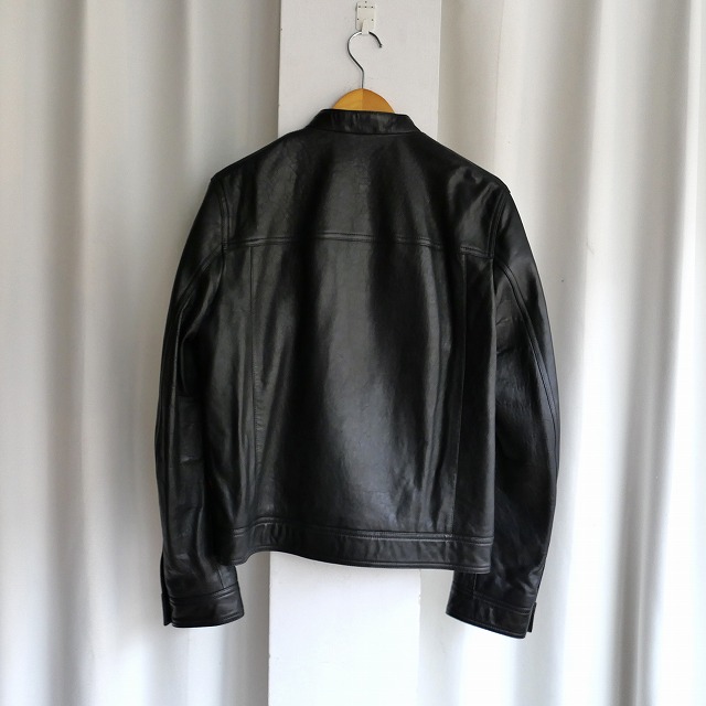 ノーカラー、フロントに一列のみジッパーが付くシングルタイプはスマートなシルエットが特徴。レザージャケット特有のハードな印象も強くないため、着回しの幅が広いのも魅力です。