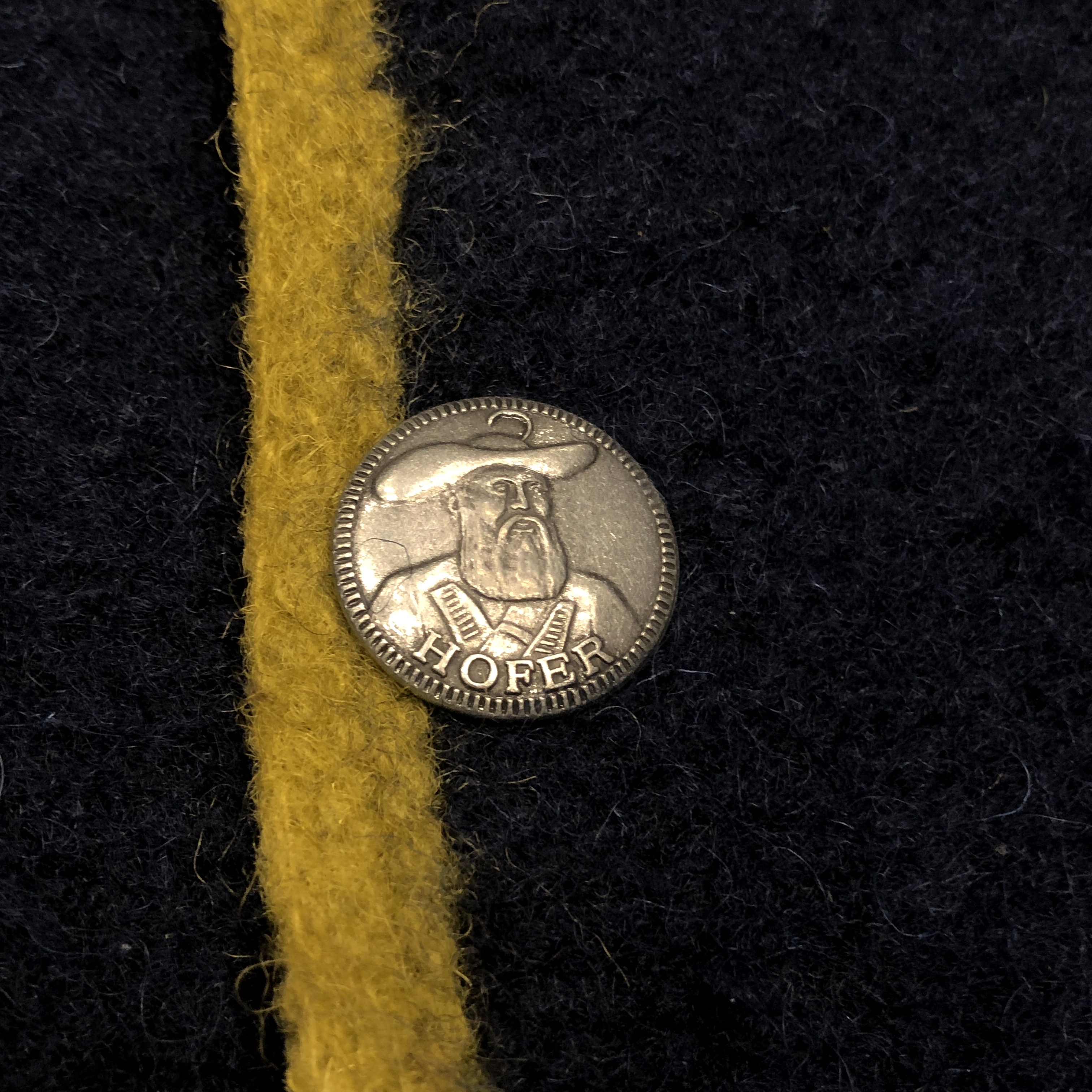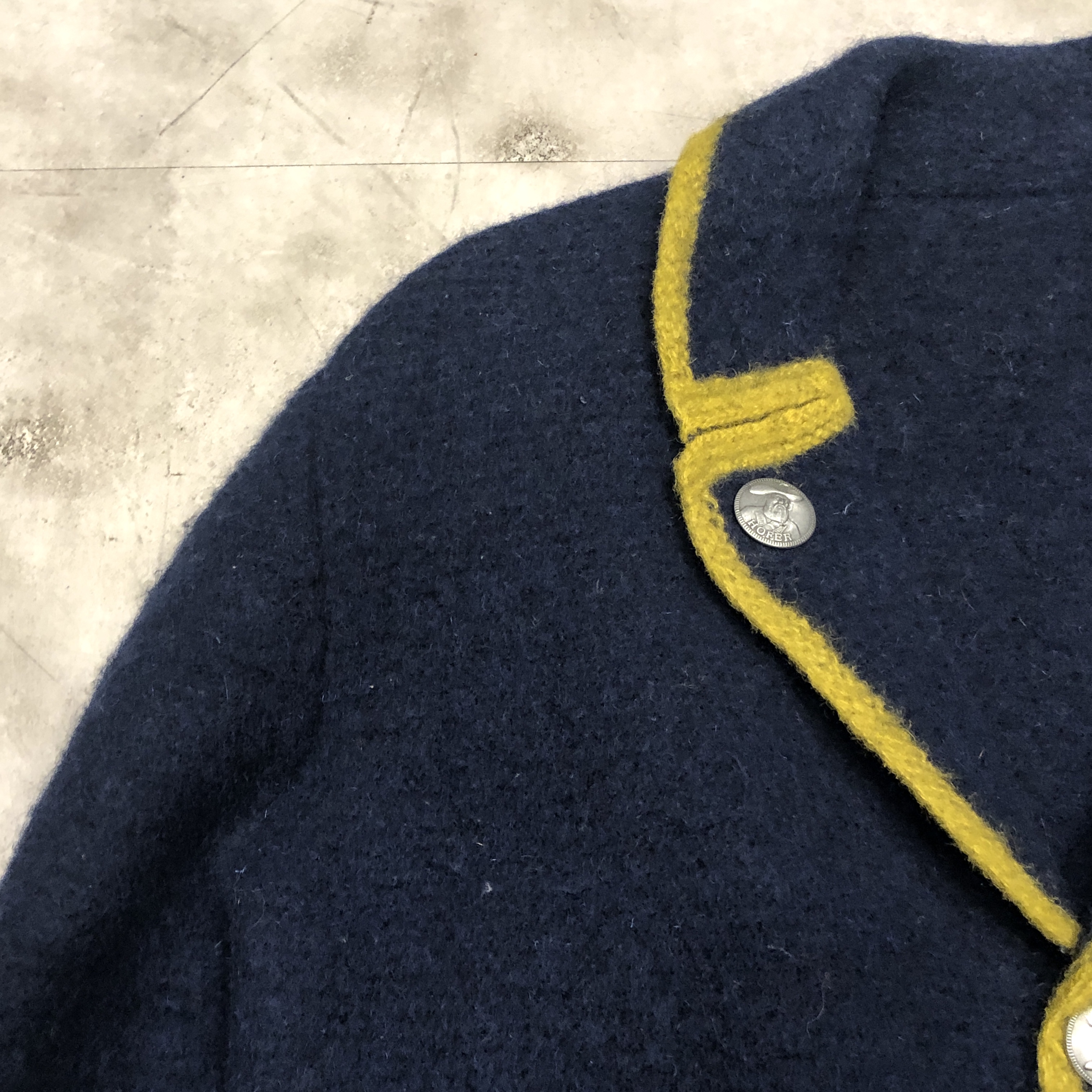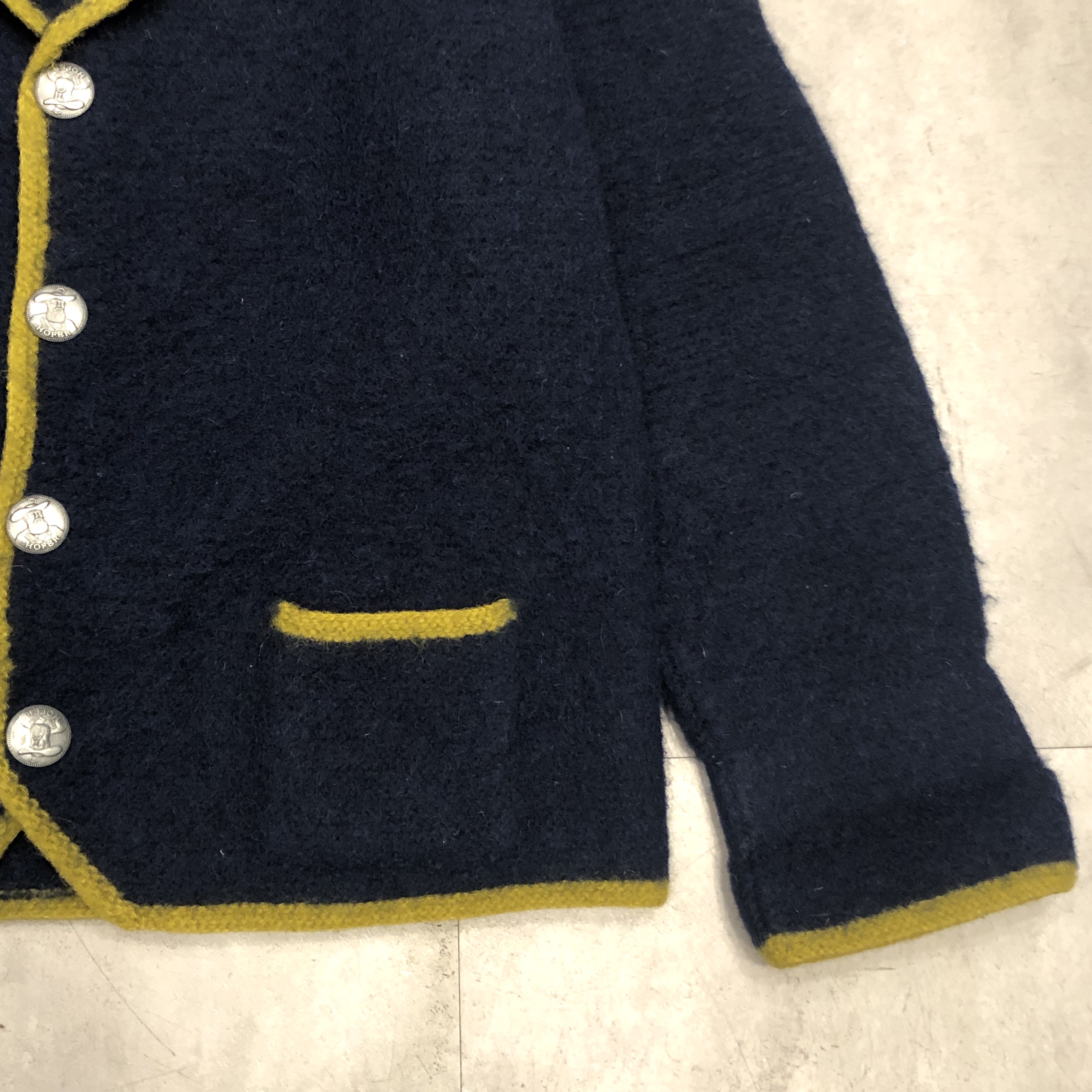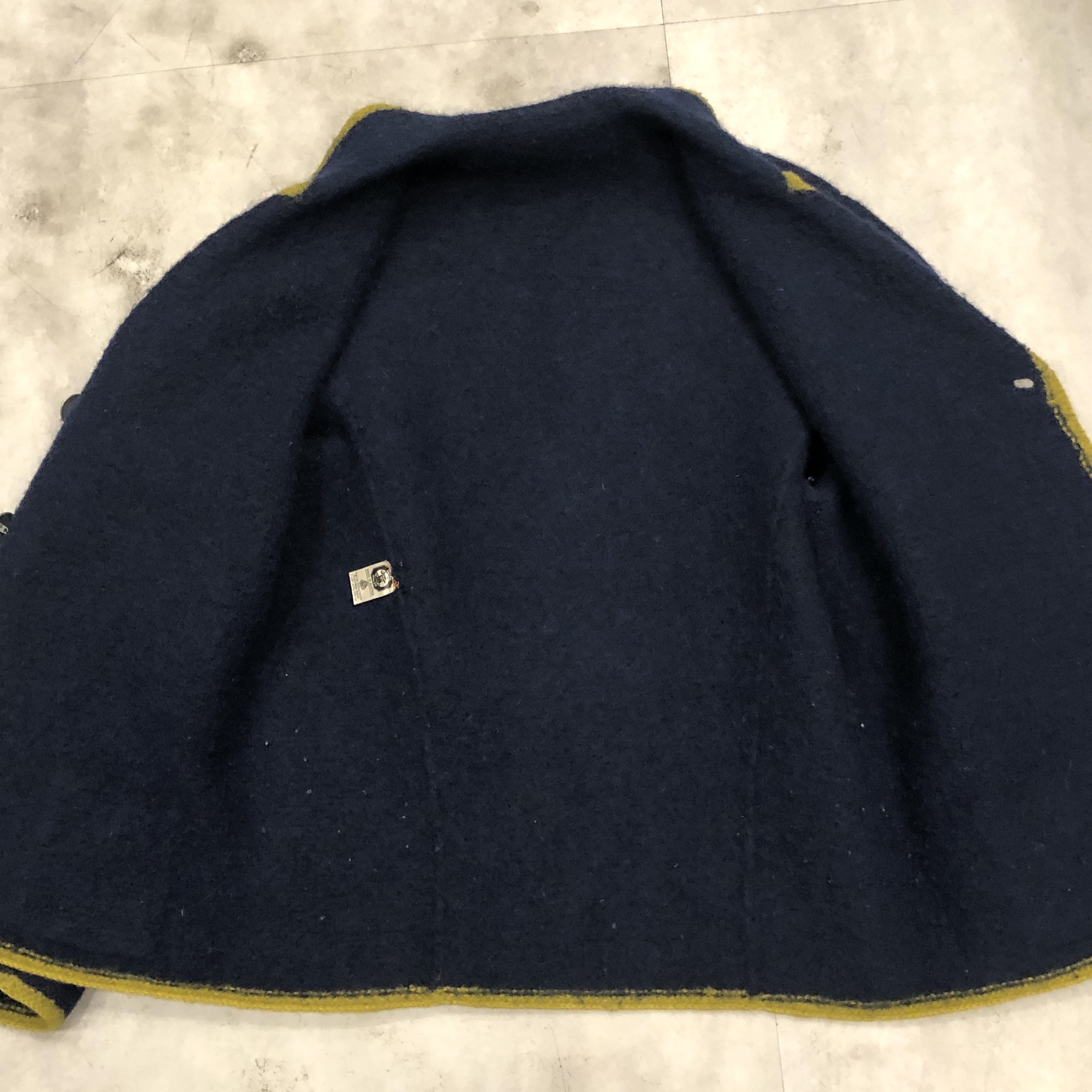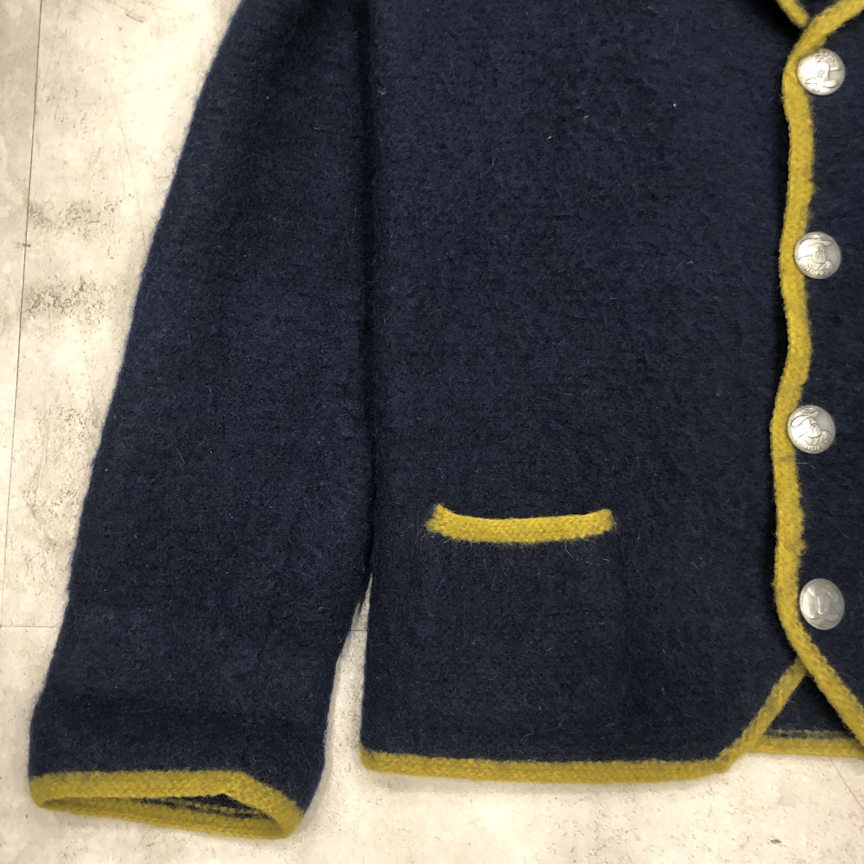 最大の魅力は、高貴なネイビーベースに施されたくすんだイエローのトリムと、コインモチーフのメタルボタン。チロル地方のクラフト文化と歴史が、こうしたディテールに色濃く息づいています。