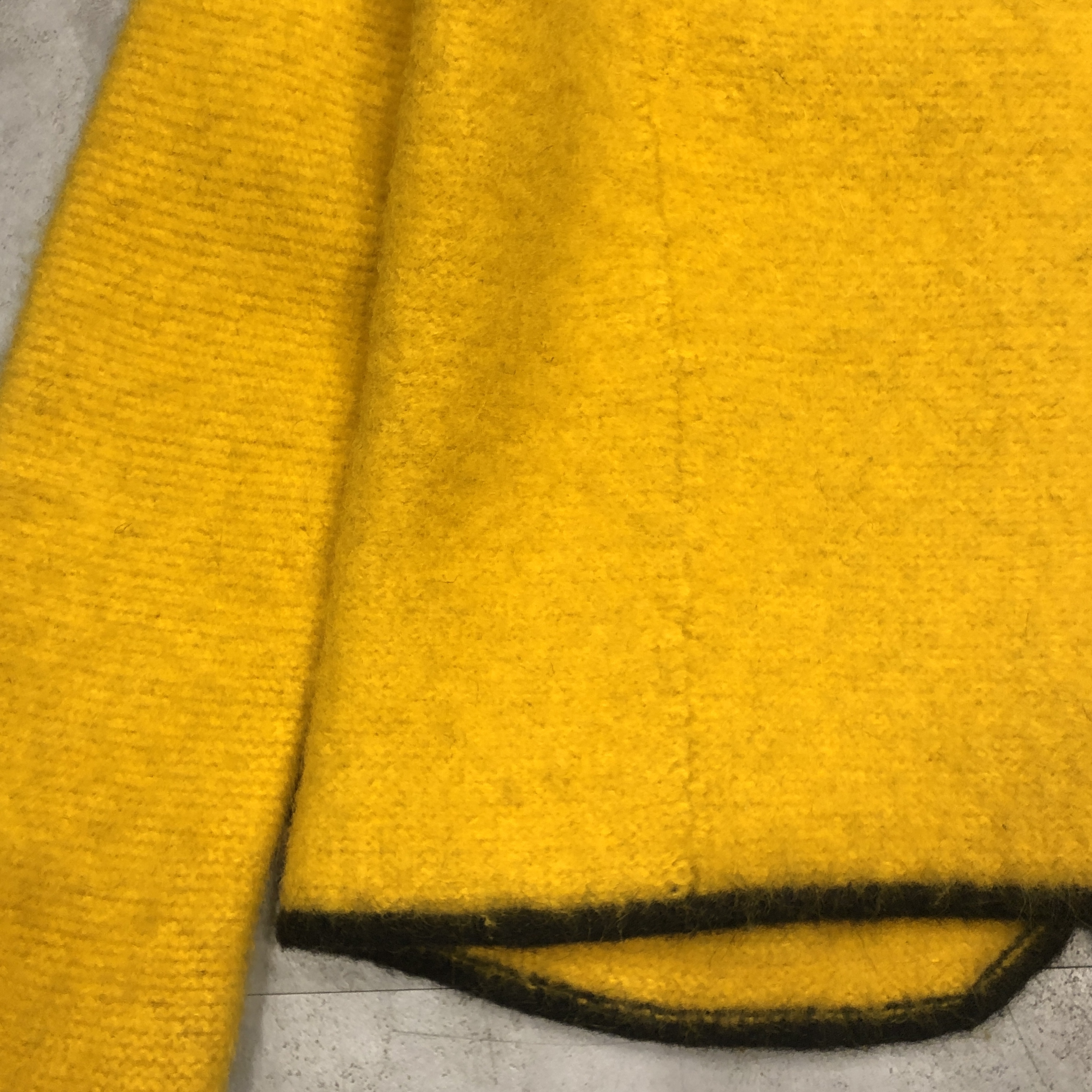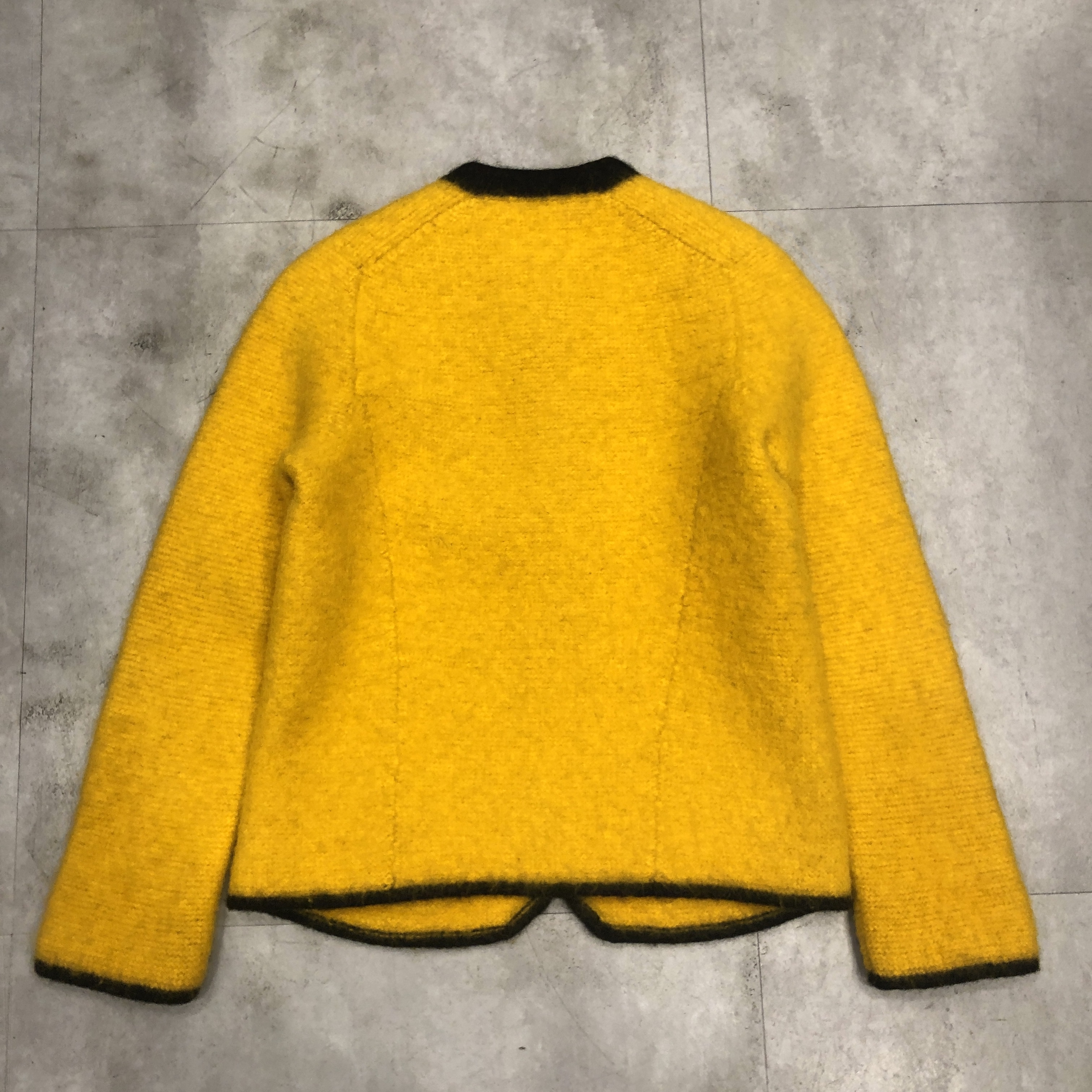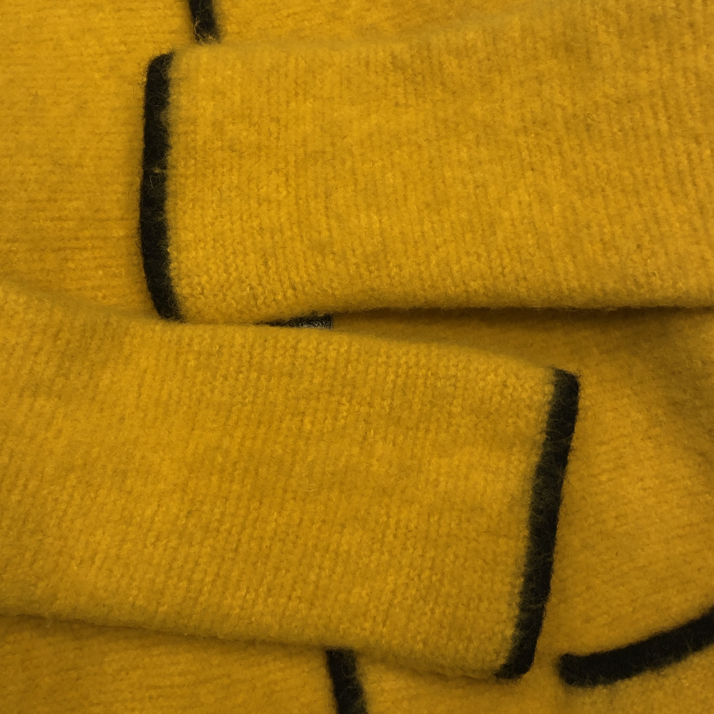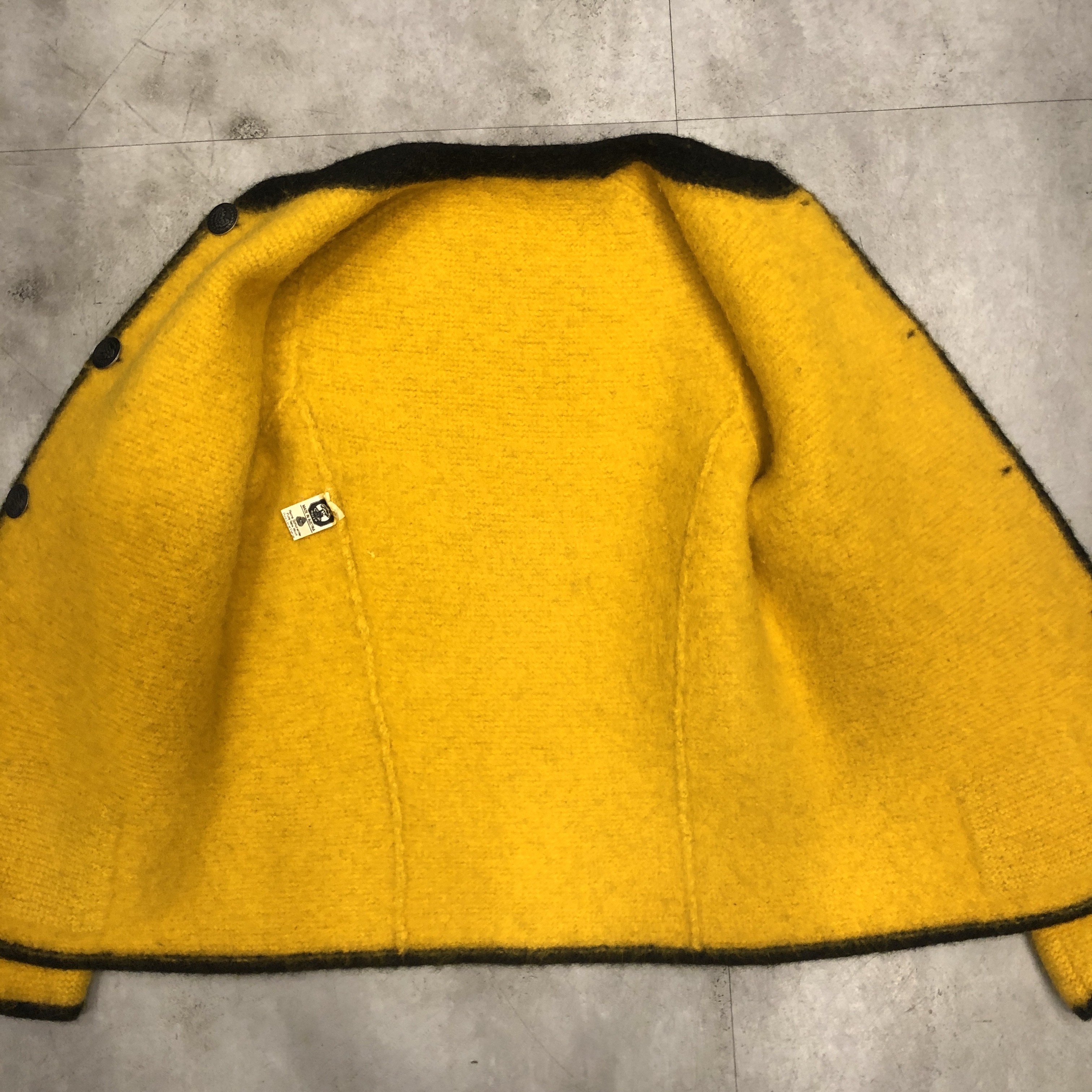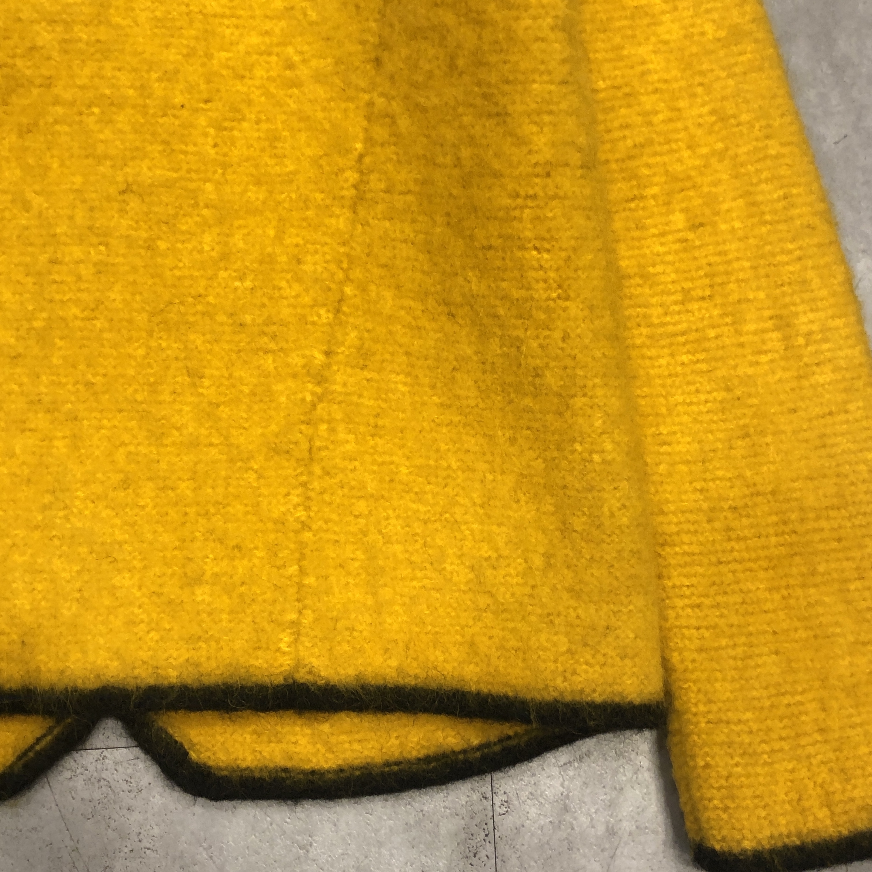 ざっくりとしたハンドメイド感のある暗めのイエローの毛足に、ブラックのパイピングが効いたコントラスト。シルバーのメタルボタンには、マリア・テレジアが刻印され、細部まで文化と歴史が息づいています。