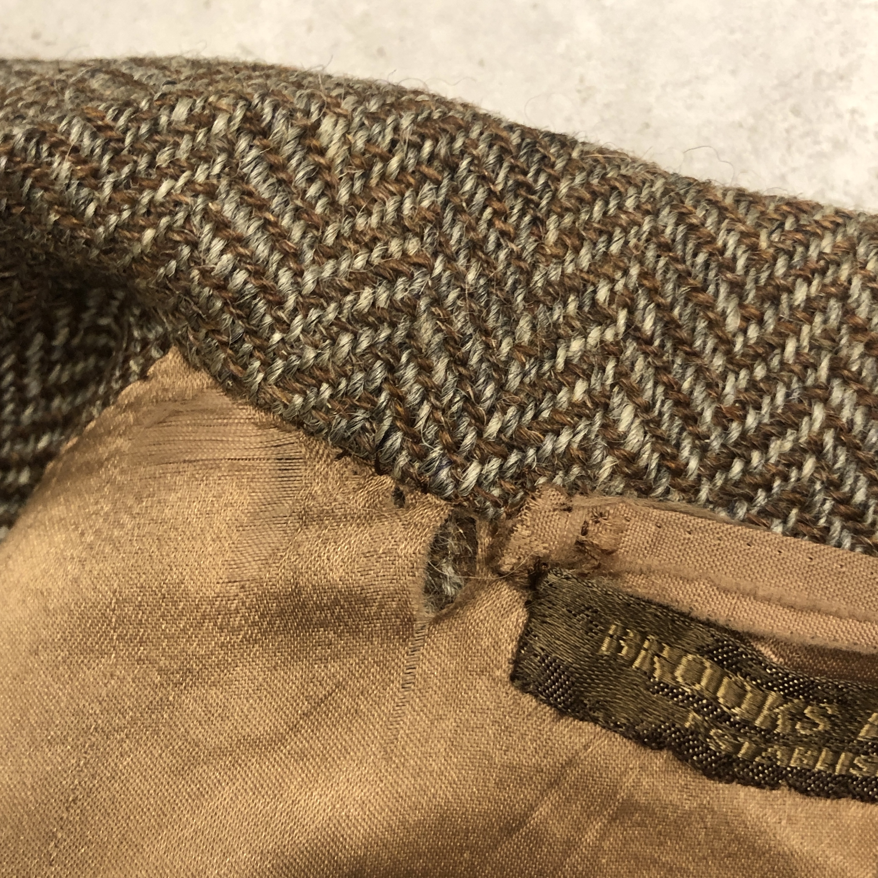 こちらは Brooks Brothers が1920年代頃に仕立てたヘリンボーン織のウール・トップコート。現存数が極端に少ない時代の “実物” がこうして姿を残していること自体、奇跡に近いと思います。