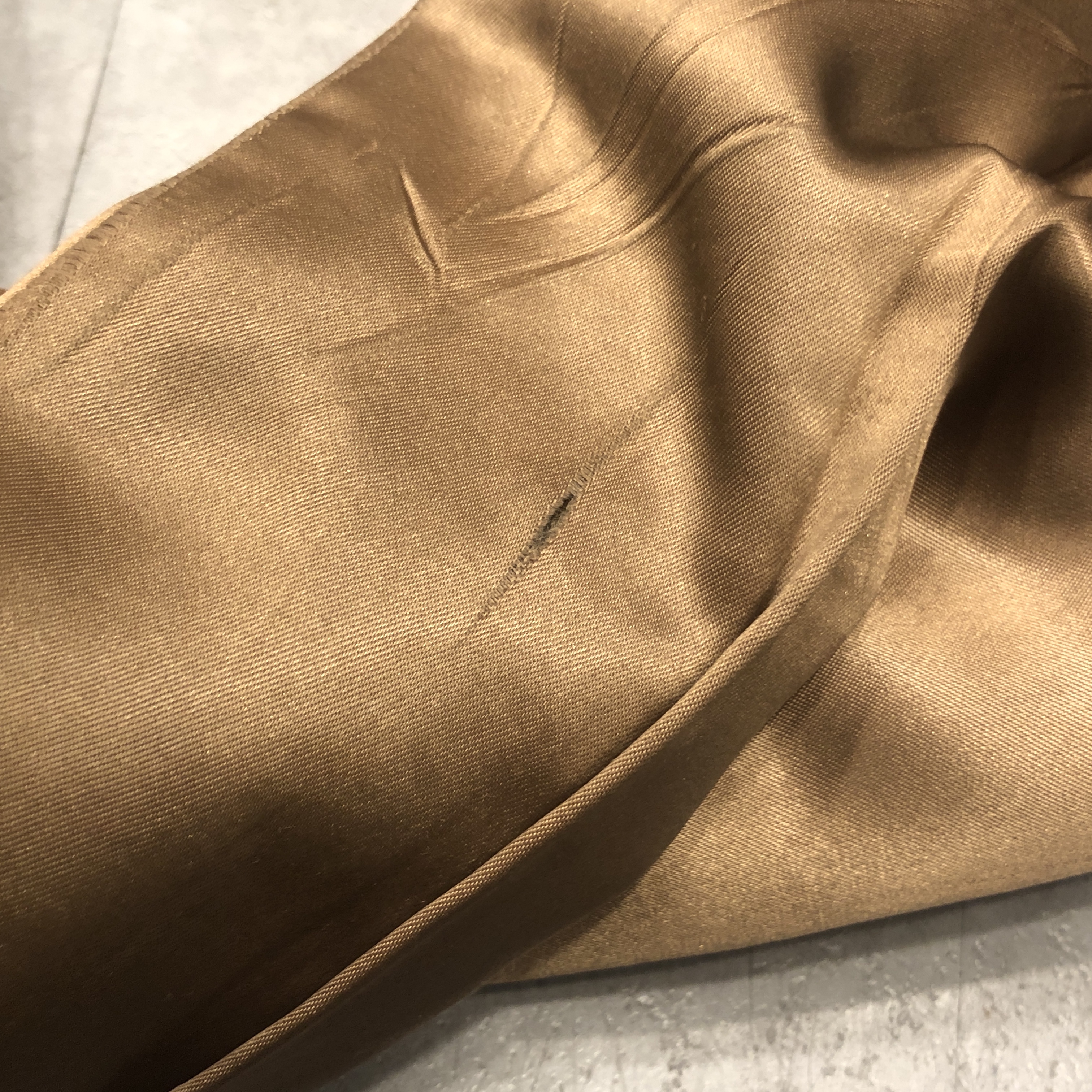 裏地も当時らしい銅色のレーヨンサテンで、独特の光沢がアンティークの雰囲気をさらに高めています。