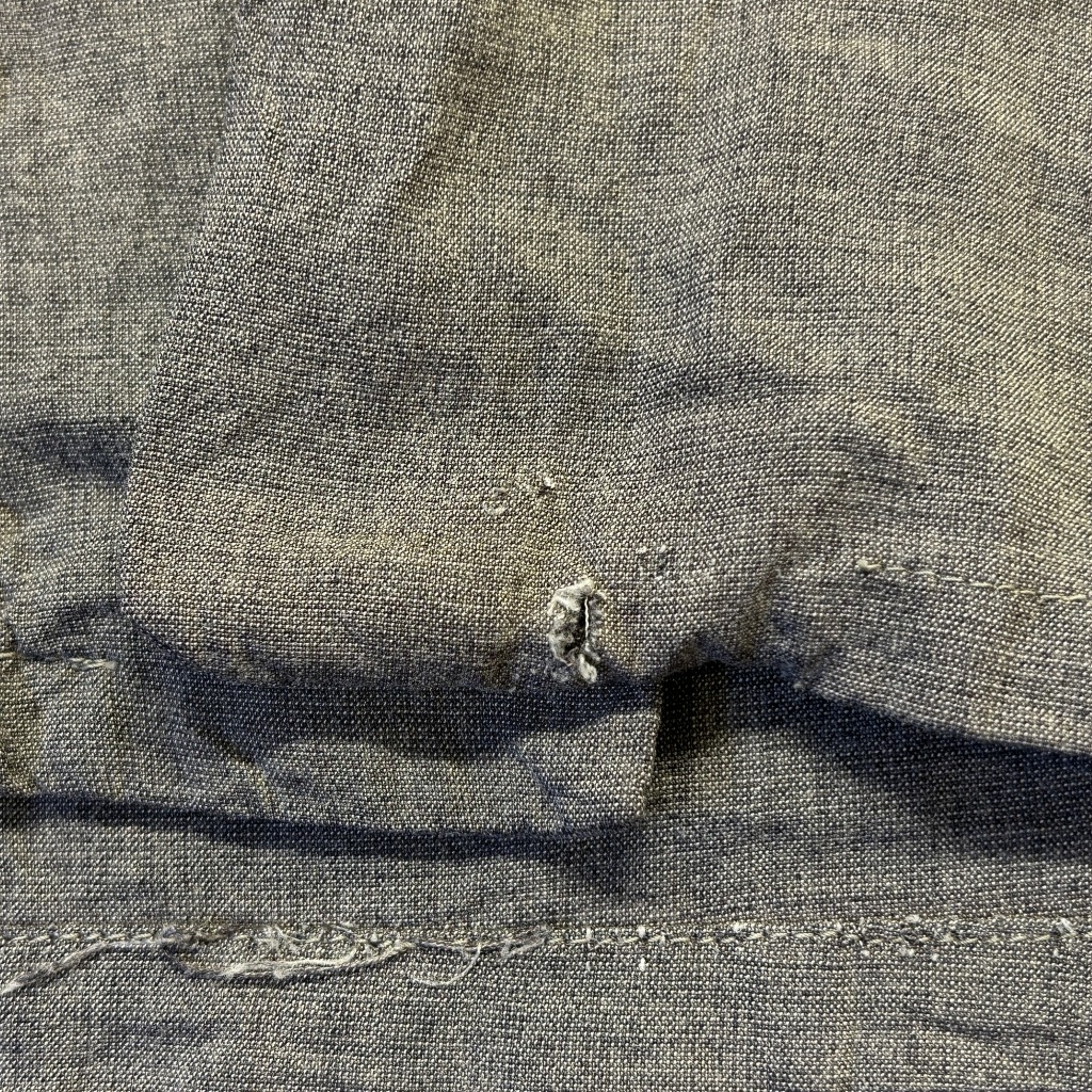 - 画像の様にリペア、スレ、小穴、袖にリステッチ、使用感がございますが、着用の問題になる様な著しい汚れやダメージ等は無く、古着慣れされた方でしたら、着用可能な状態になります。