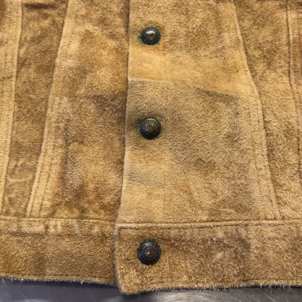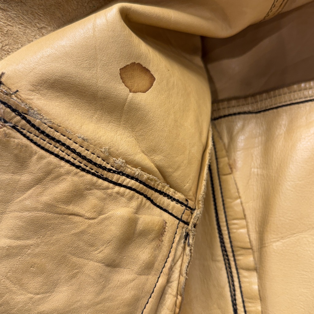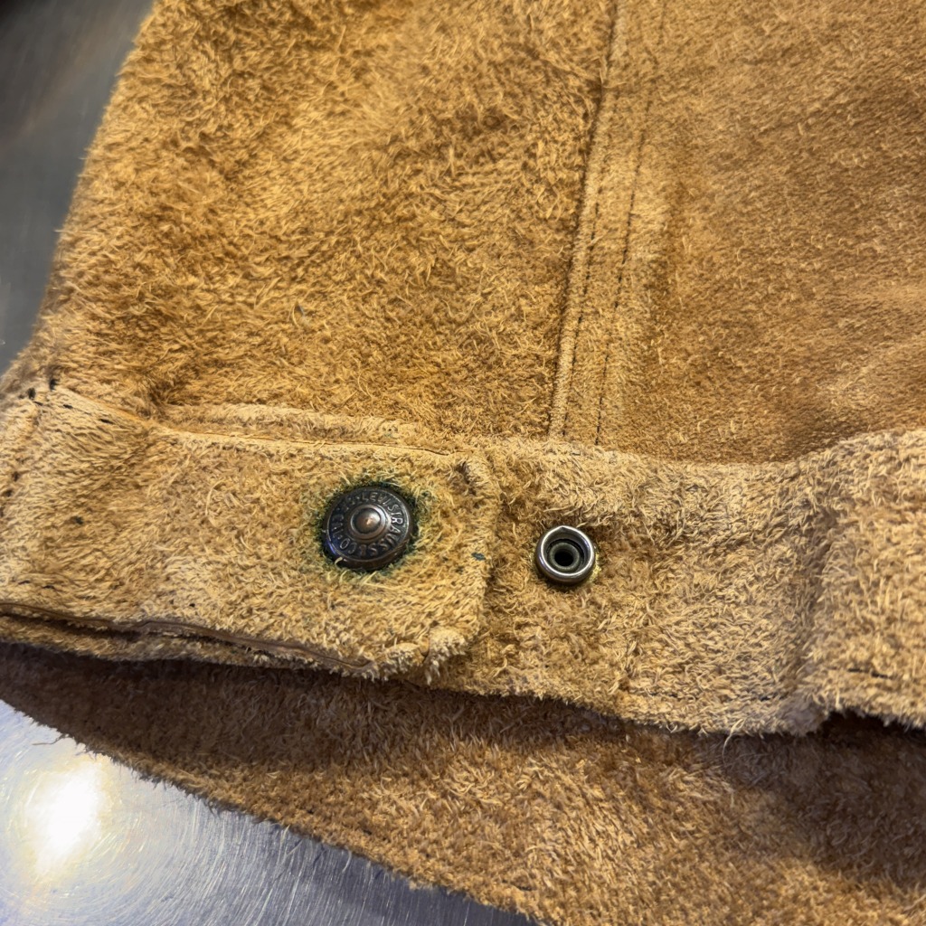 年代特有のスレや色落ち、薄汚れ、画像のようなボタン付近の青錆がございますが古着慣れされた方でしたら問題無くご着用いただけます。
