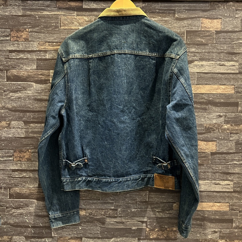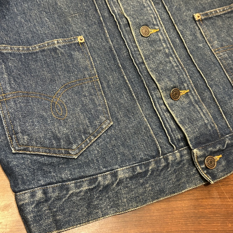 - 袖や後身頃のバックルのリベットが欠損しております。デニム特有の色落ちやアタリ等の着用感がございますが、その他に目立つダメージ等は無く、古着慣れされた方でしたら問題無く着用していただける状態です。