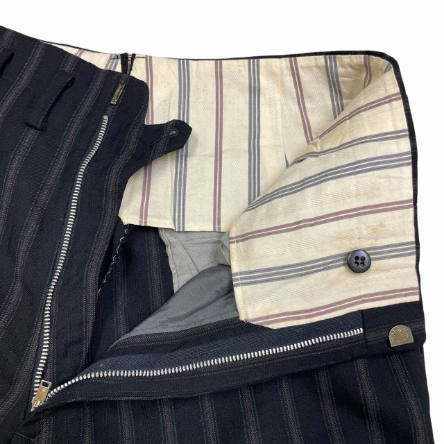「ENGLAND製、ストライプ、タック入り、実寸W32 L25.5」