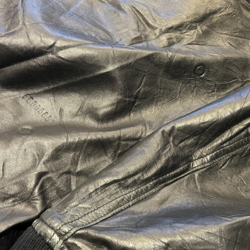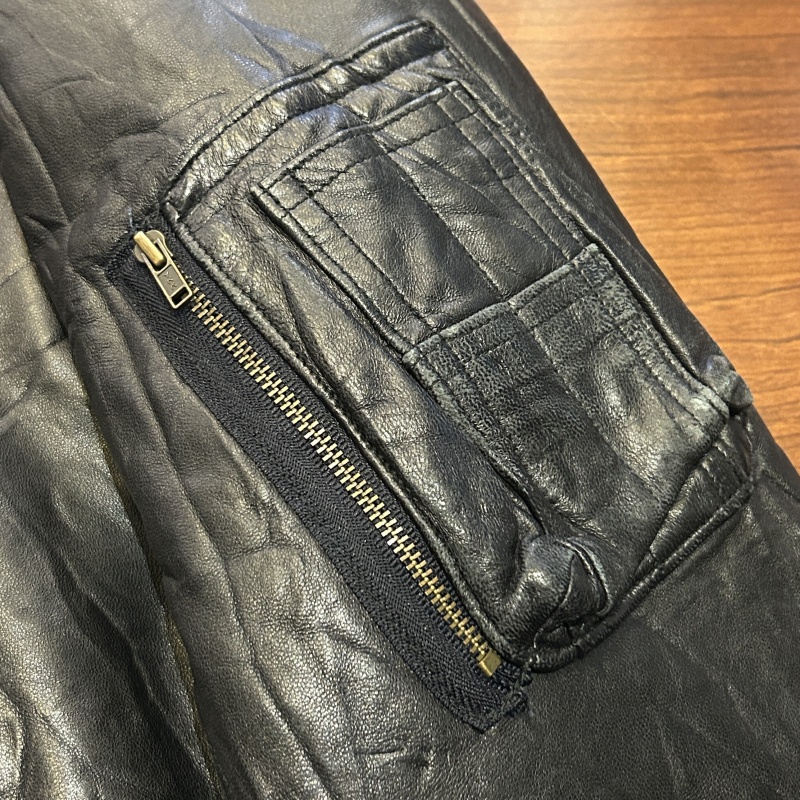 - 画像の様に右袖にダメージや裏地のステッチ抜け、レザー特有の傷やシワ等の着用感がございます。着用には問題無く古着慣れされた方におすすめです。
