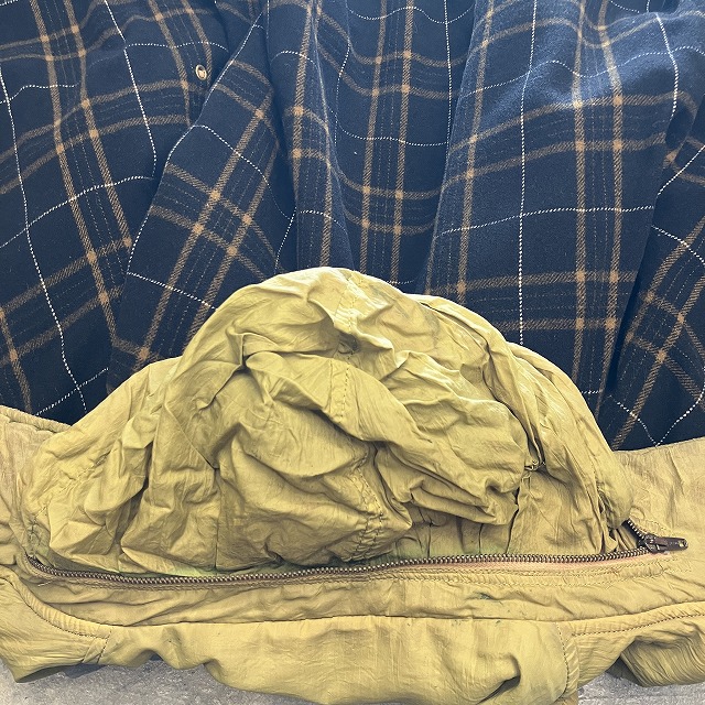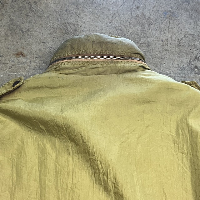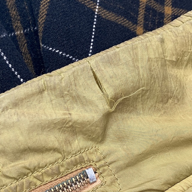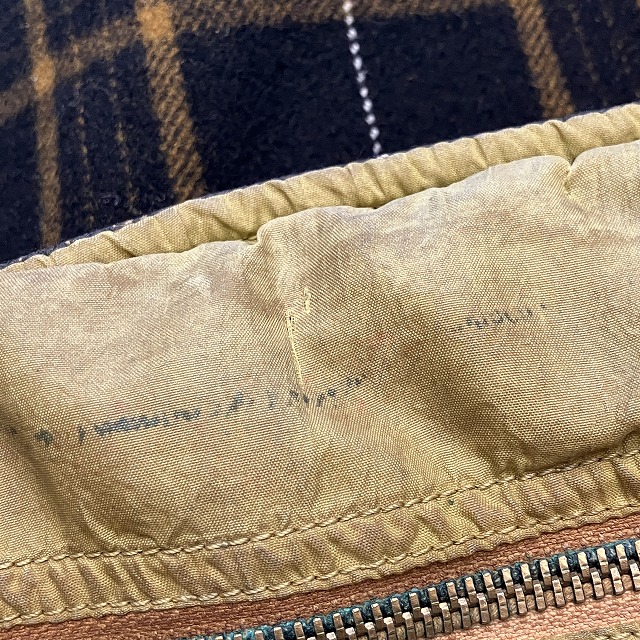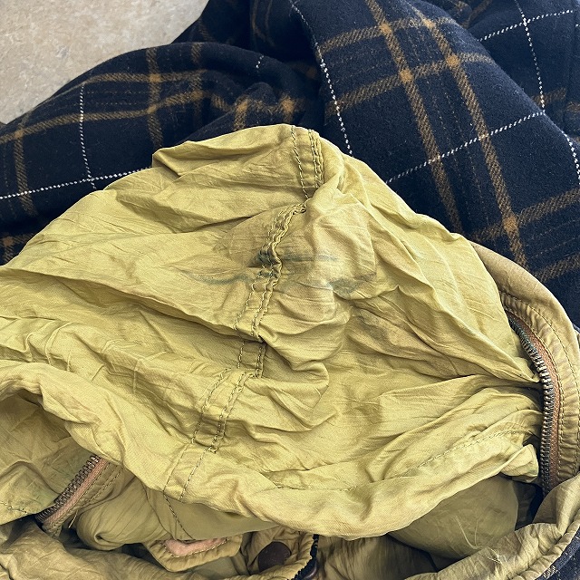 - 所々に画像の様なリペアがみられます。また、襟にダメージや薄汚れがみられます。その他、変色等の年代相応の着用感がみられ、ユーズド慣れされている方におすすめの商品です。