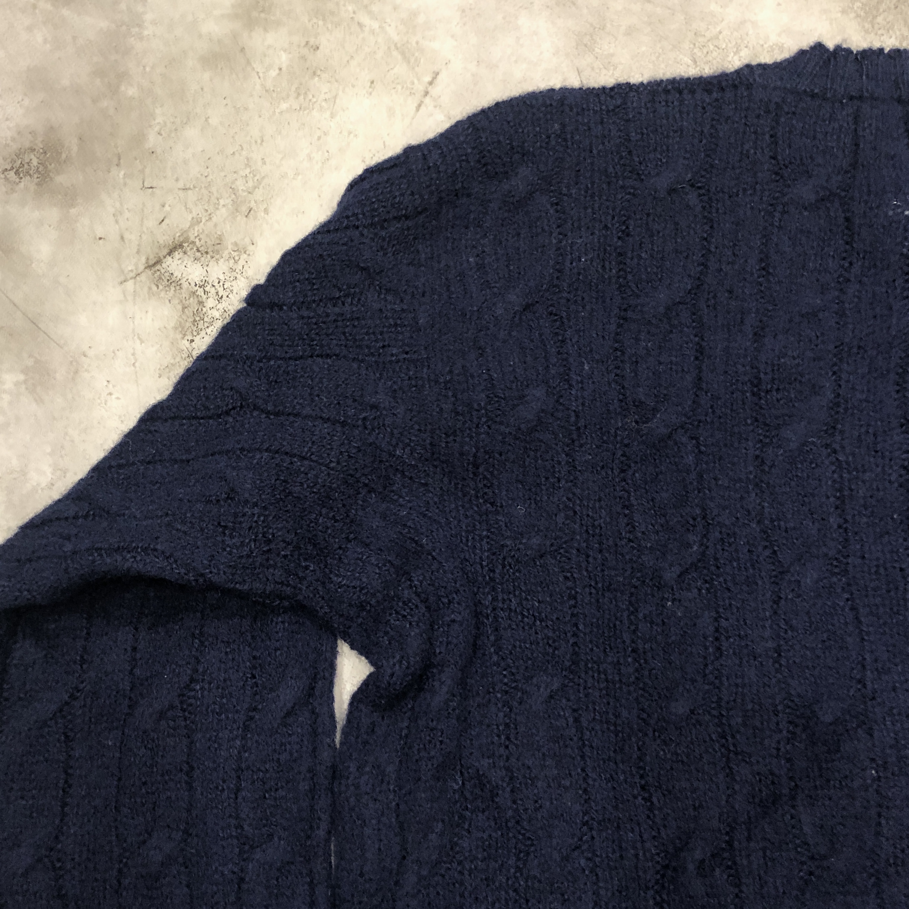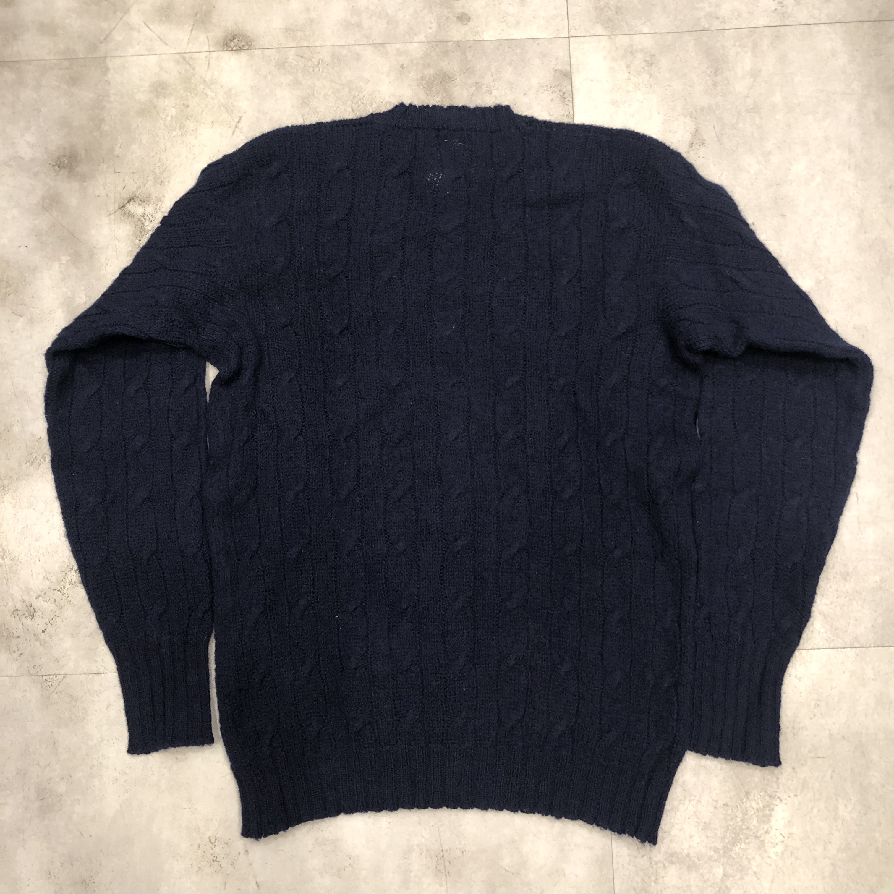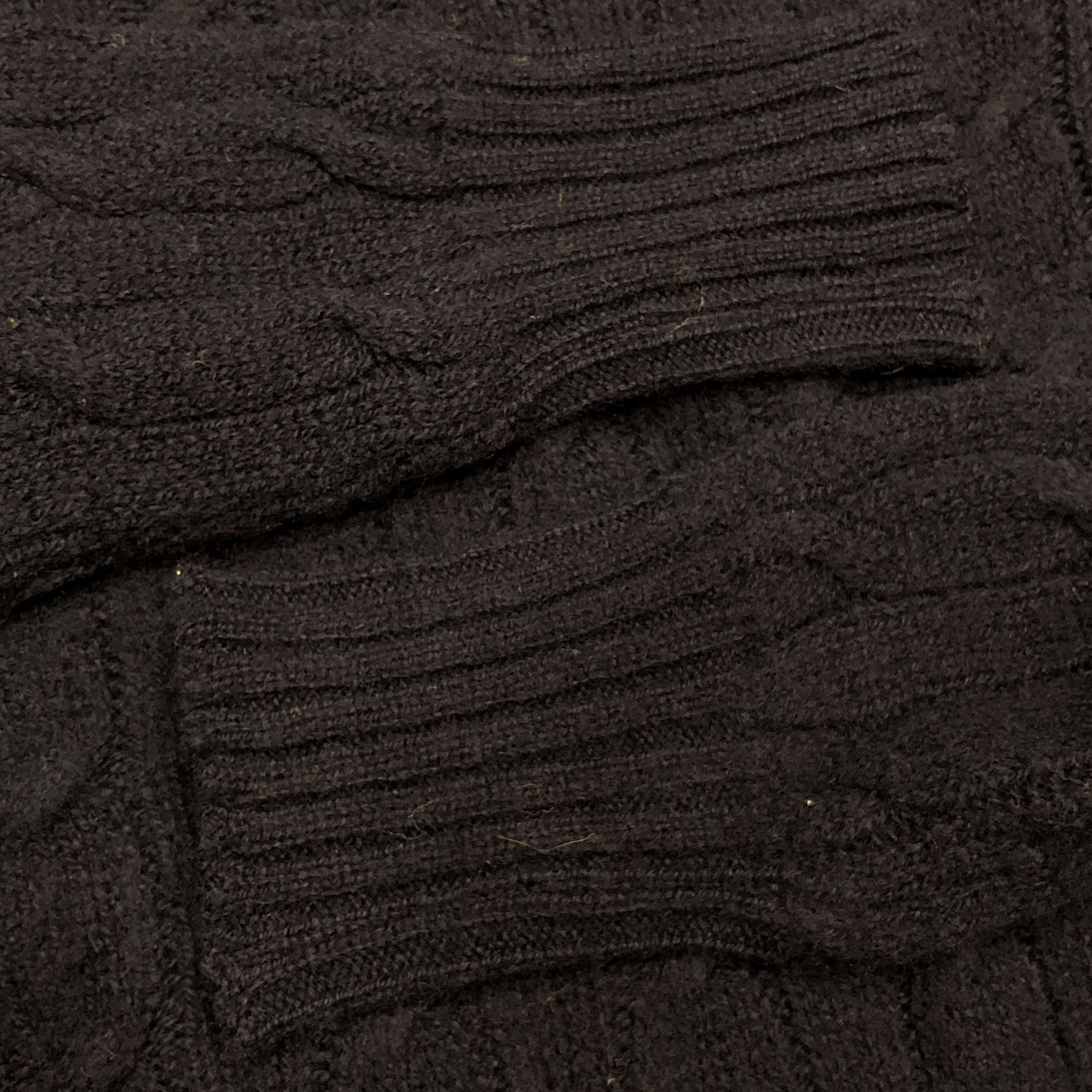 深みのあるネイビーカラーに、クラシックなケーブル編み。