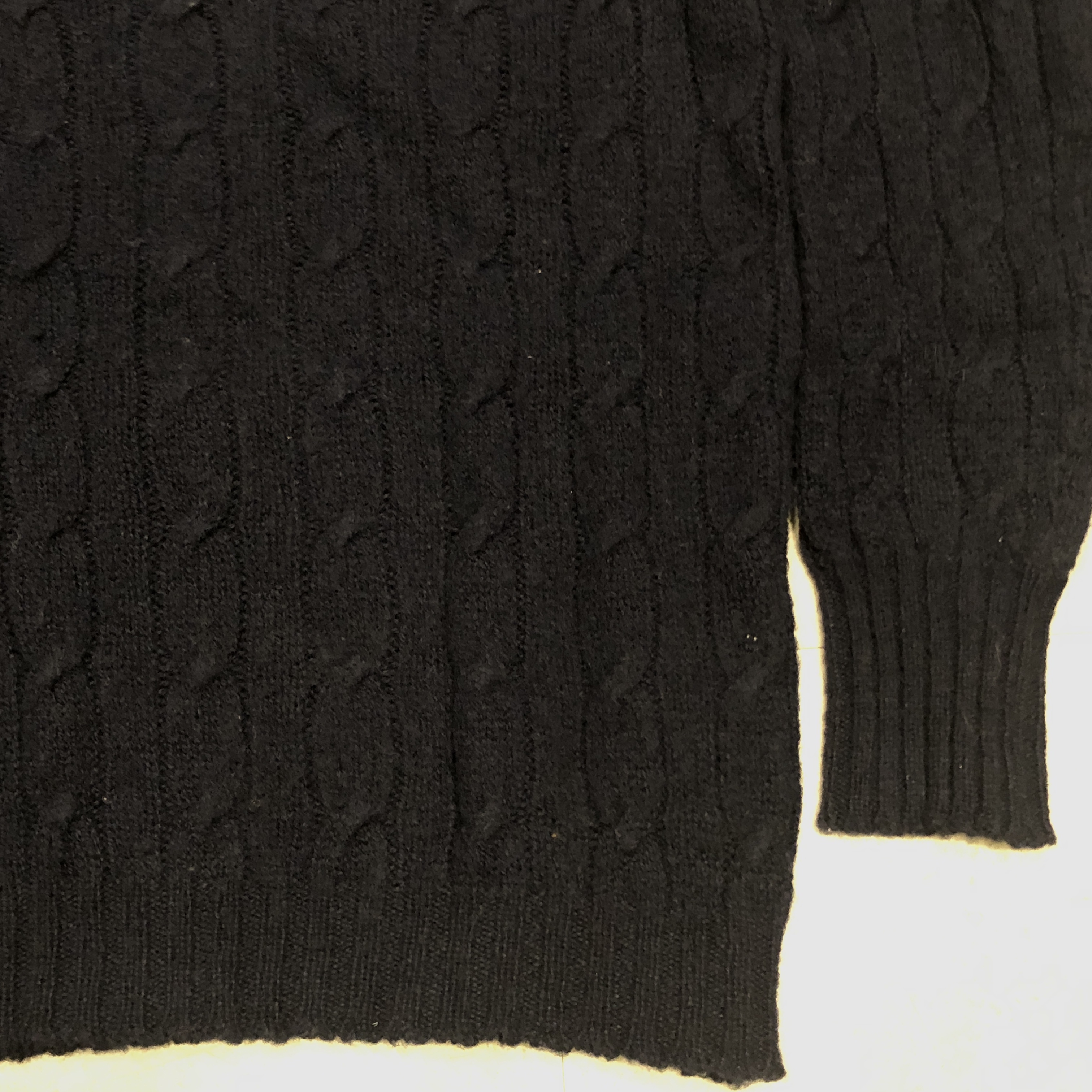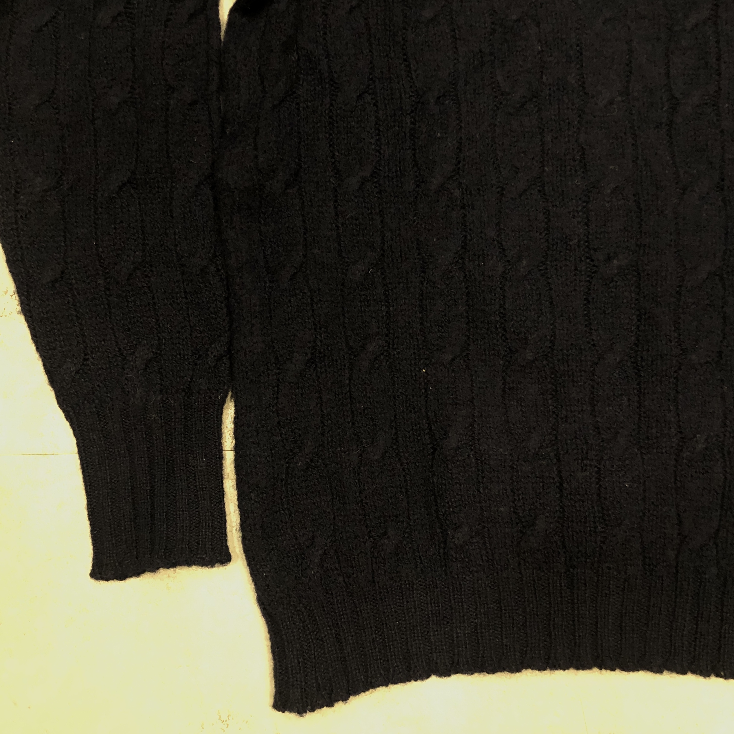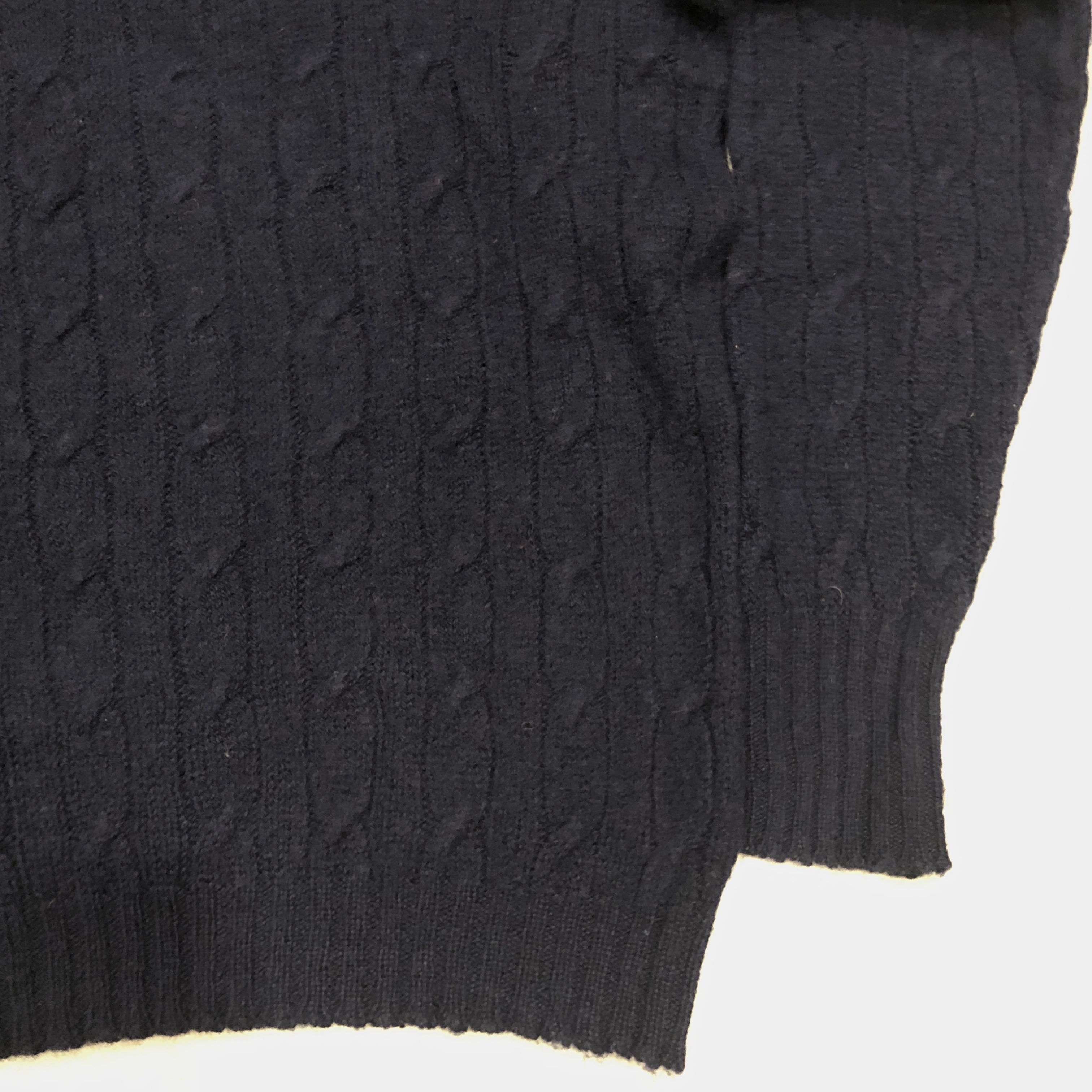 深みのあるネイビーカラーに、クラシックなケーブル編み。