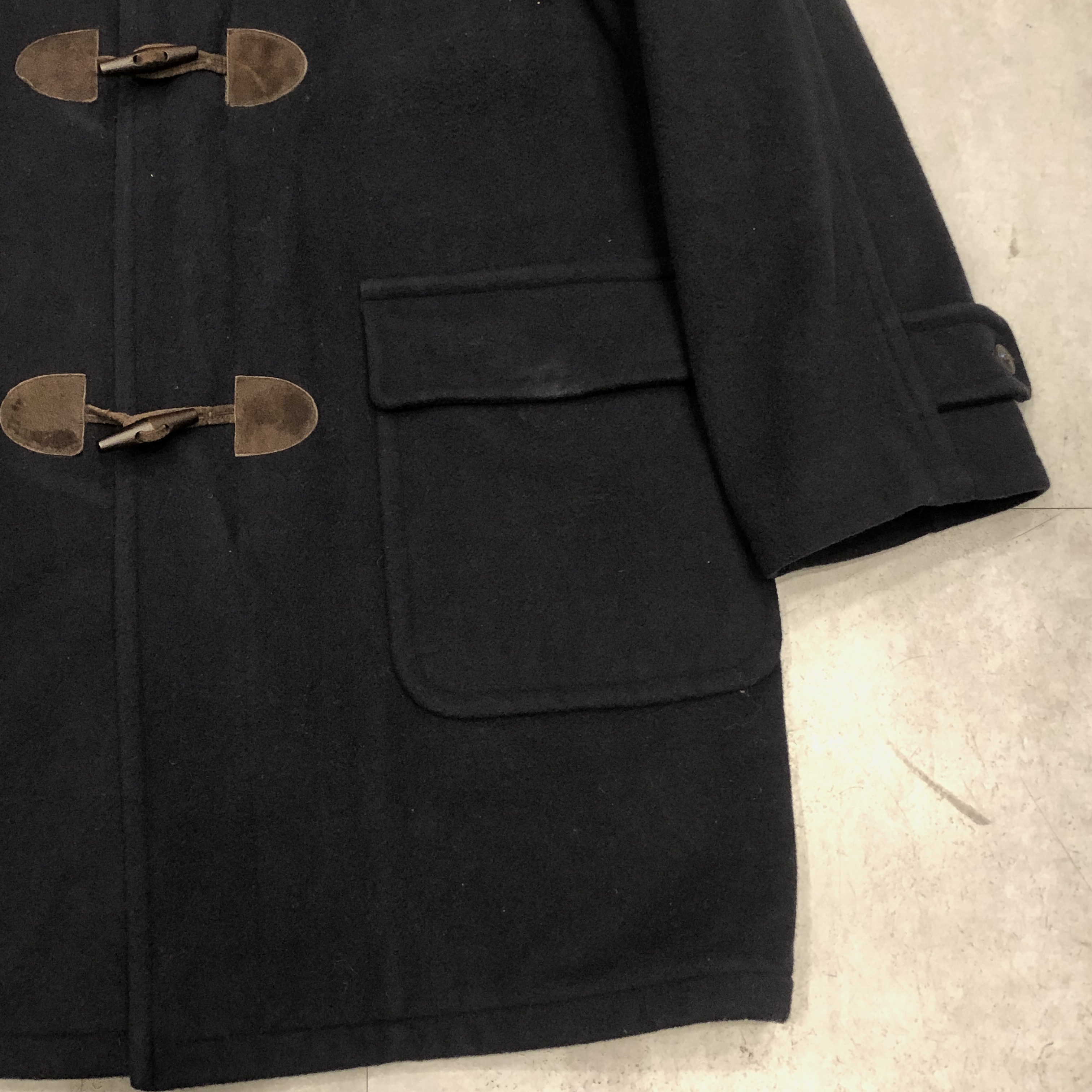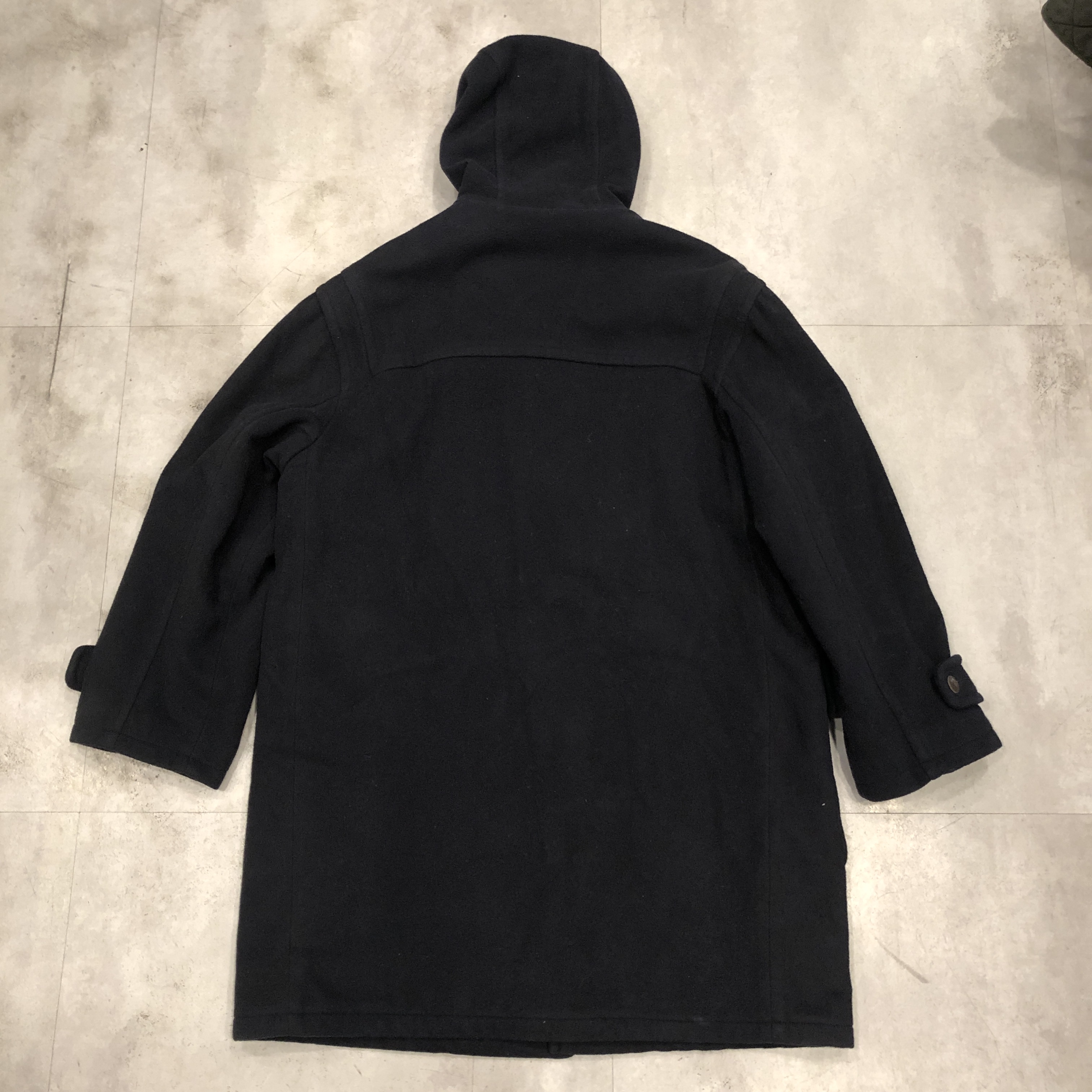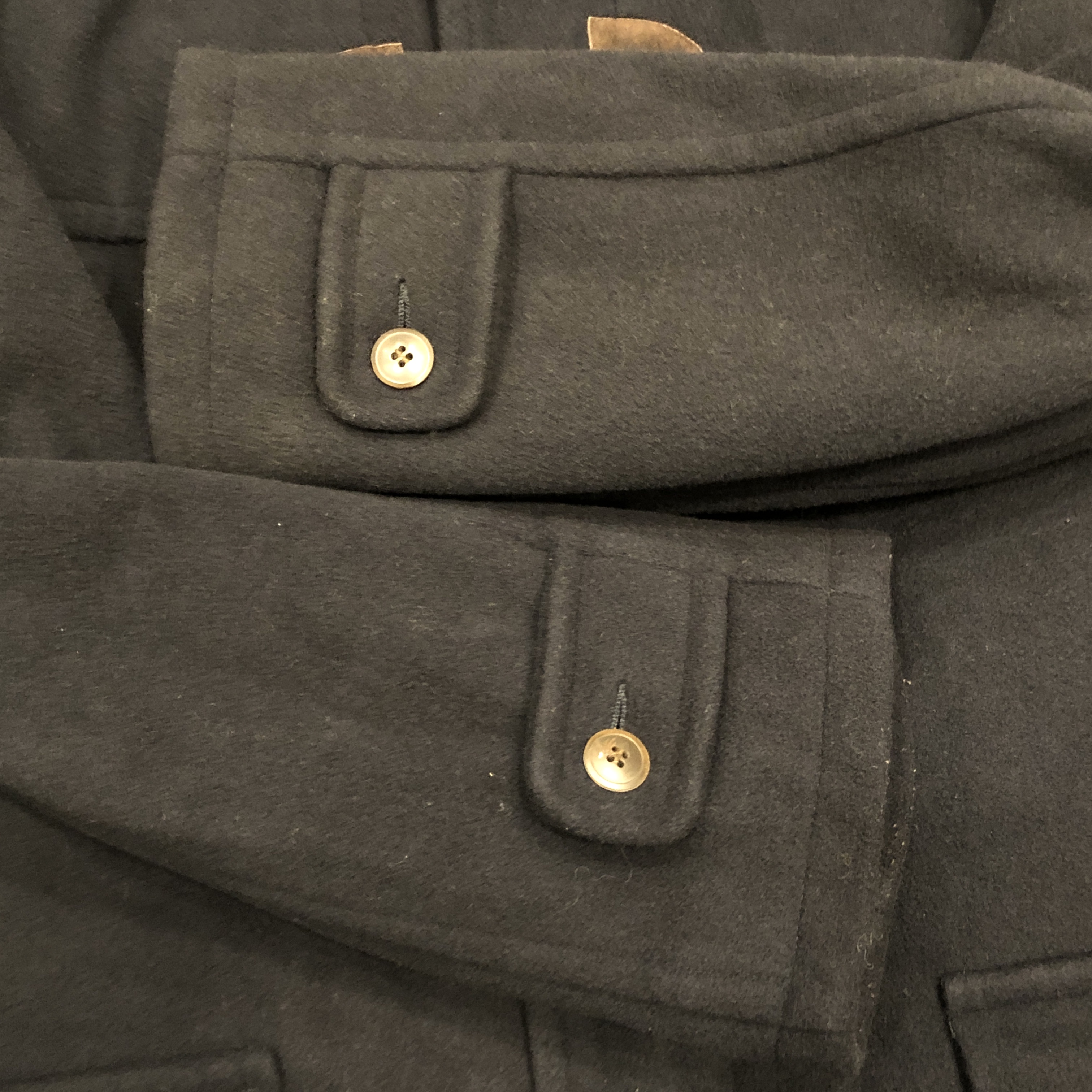 フロントのトグルはレザー×木製トグルの王道仕様。