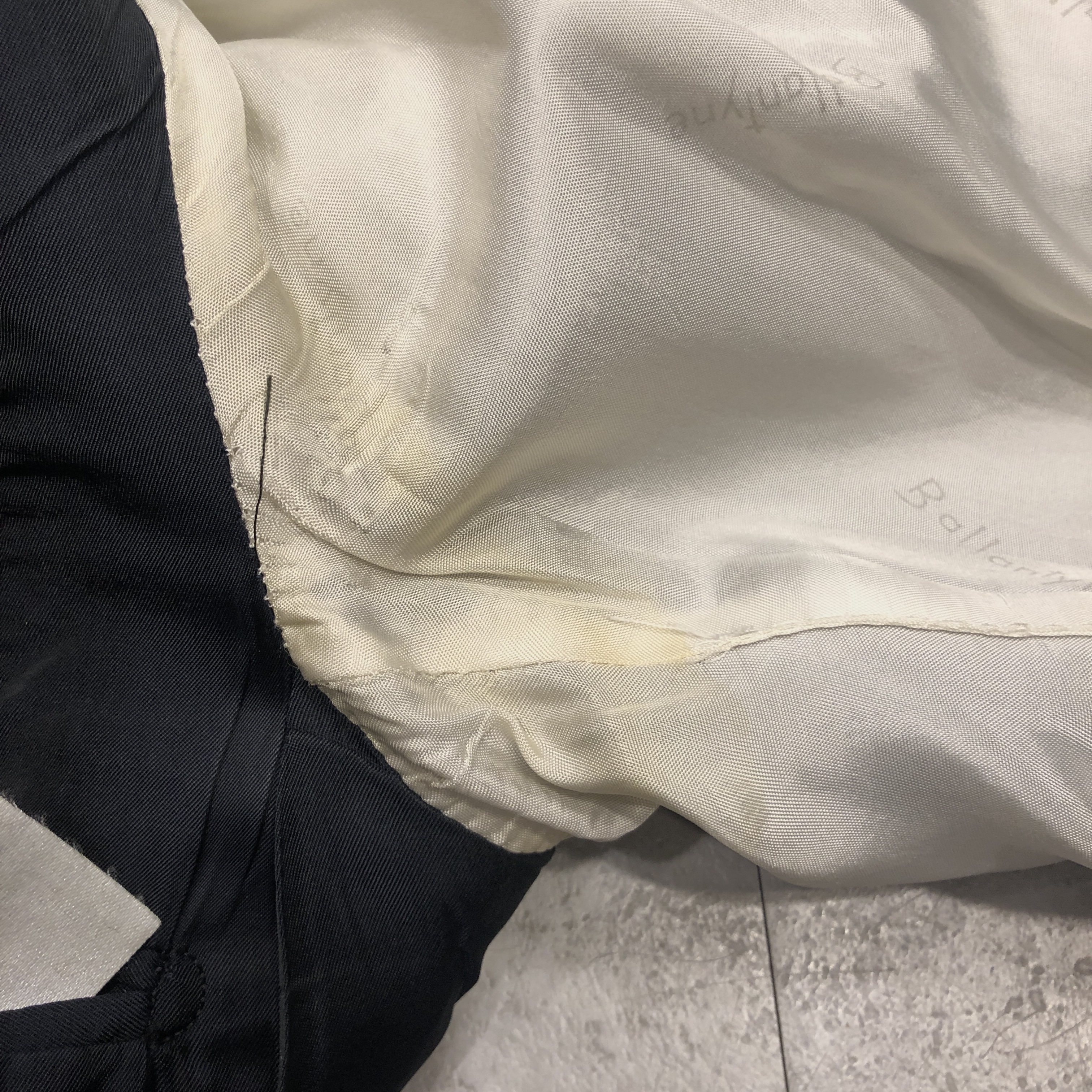 - 年代相応の着用感、内側脇下に画像の様なシミがございますが、古着慣れされている方でしたら問題なく着用していただける範囲です。肩パッドが入っています。