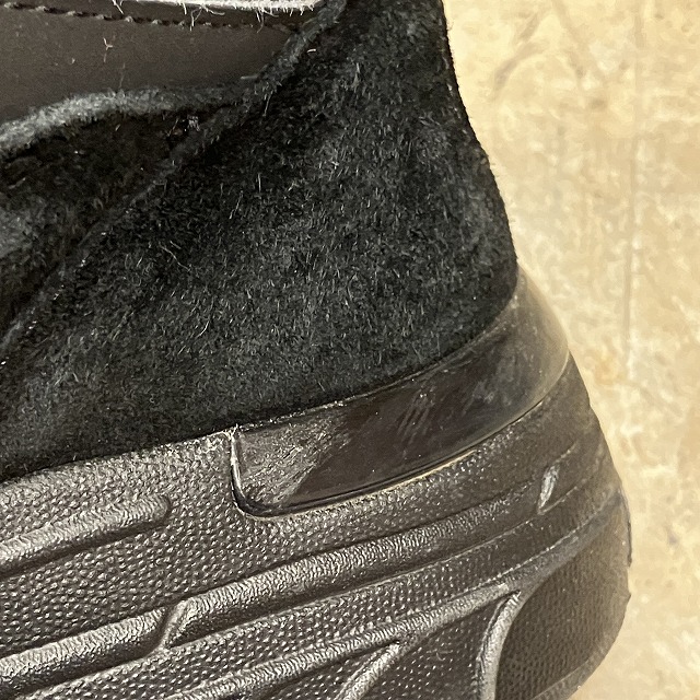 - アッパーにスレ、ミッドソールに薄汚れや、小傷がみられます。また、アウトソールに薄汚れや、若干のすり減りがみられます。その他、着用感はございますが、ユーズド慣れされた方でしたら、まだまだ問題なく着用していただけます。