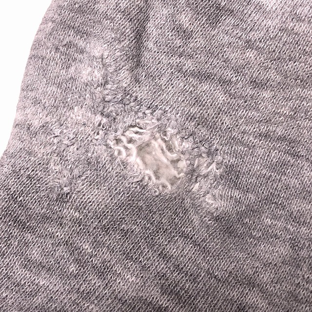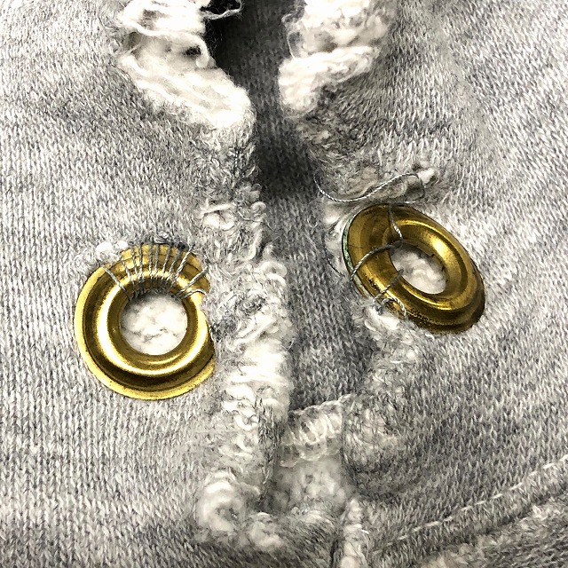 ハトメ部分や左脇腹付近に手縫いで簡易的なお直しがございます。