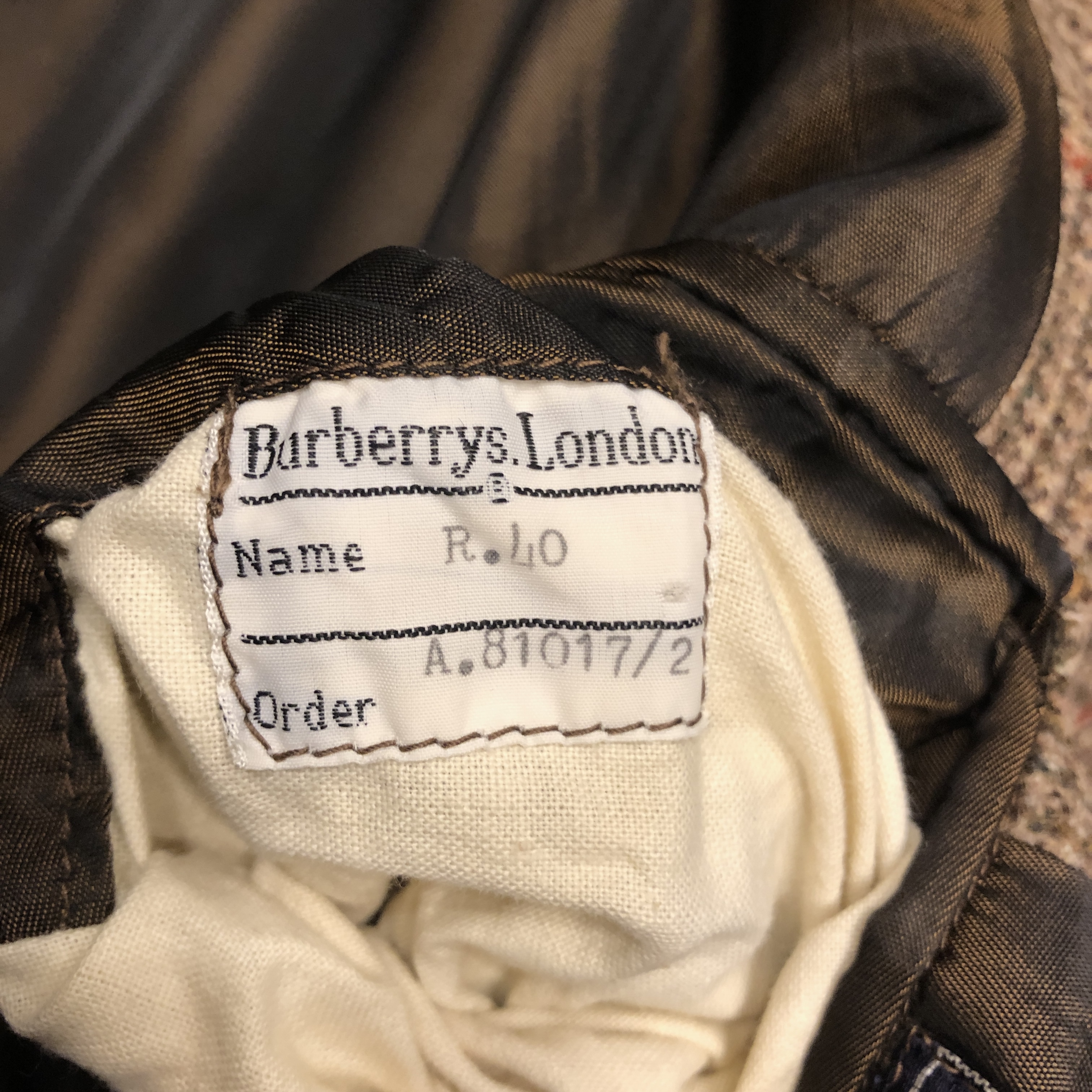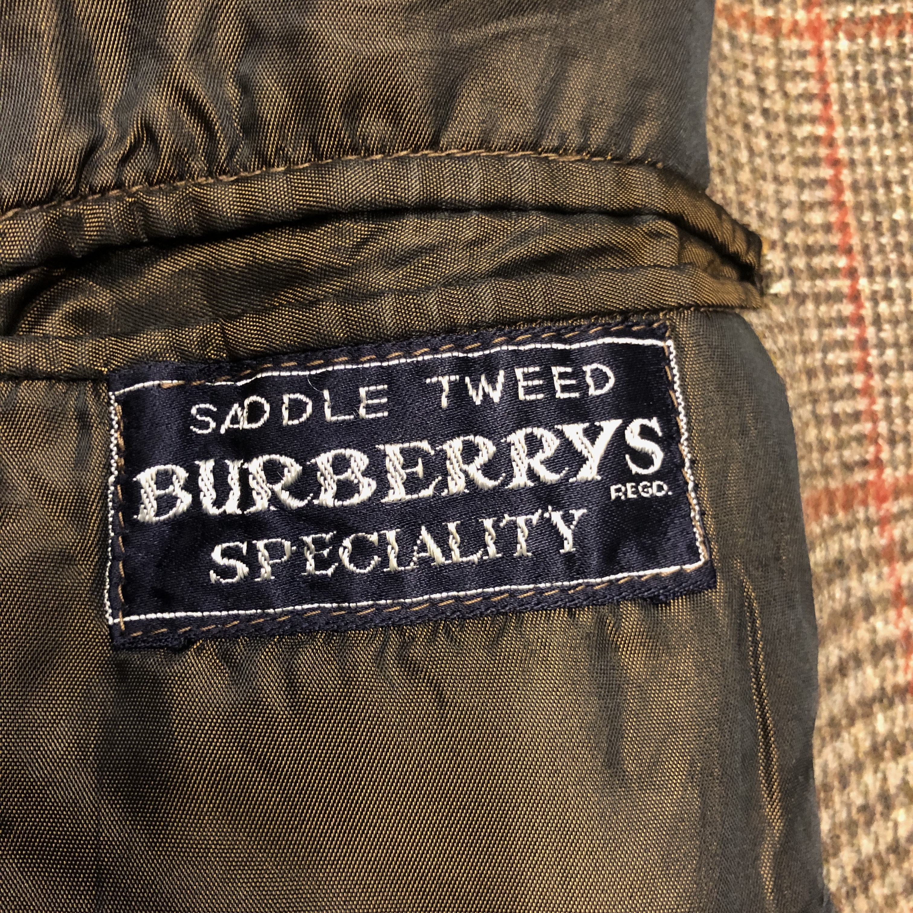 タグからも分かる通り Made in England。さらに「SADDLE TWEED / Burberrys’ Specialty」の表記が入る点は、当時の中でも少し特別な素材・位置付けであったことを物語っています。