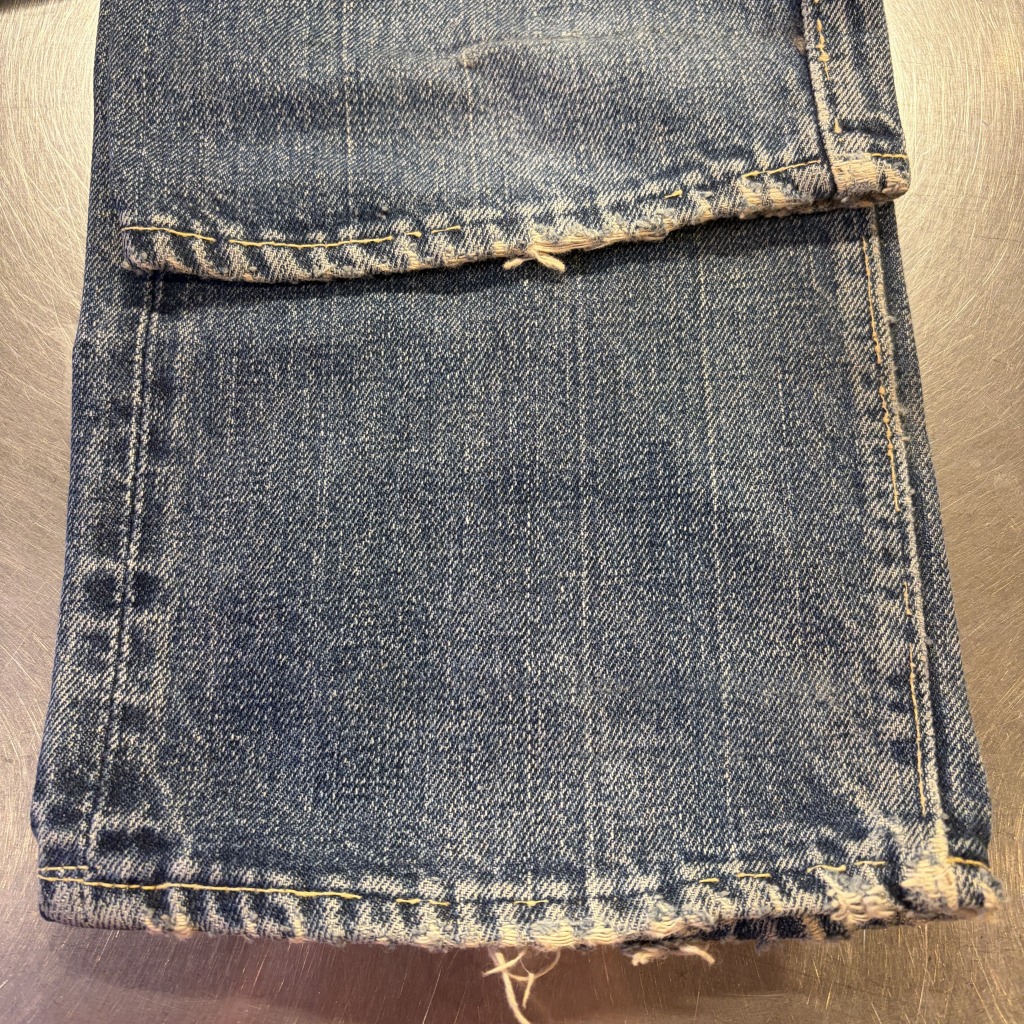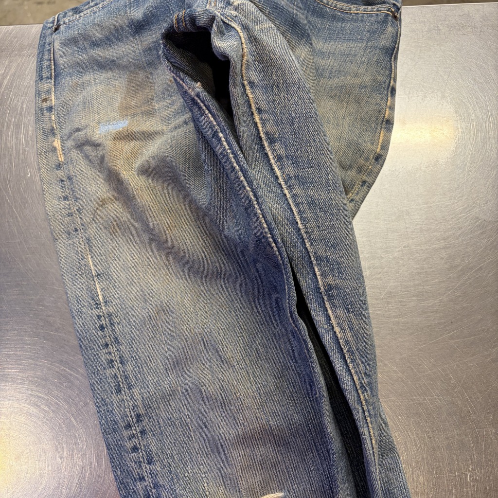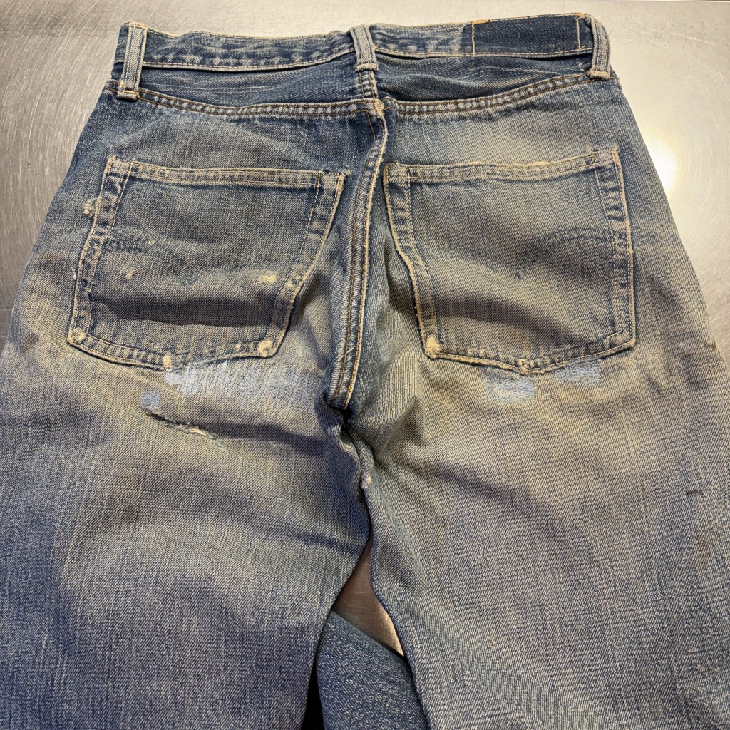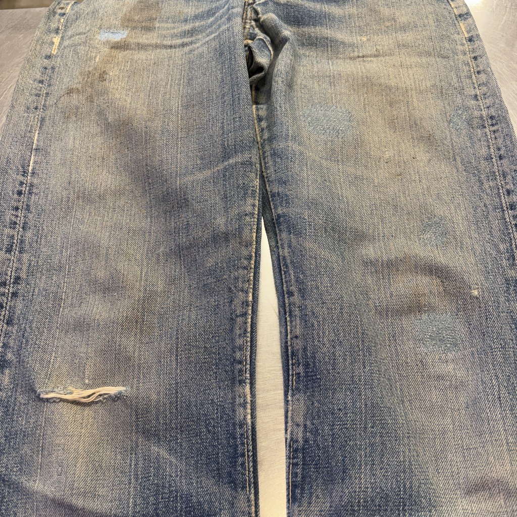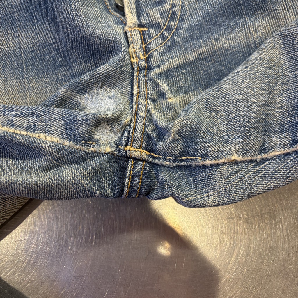 - 全体的に汚れやあたり、スレ、ダメージ等があり全体的に着用感ございます。ステッチ抜けやリペアも複数個所されています。