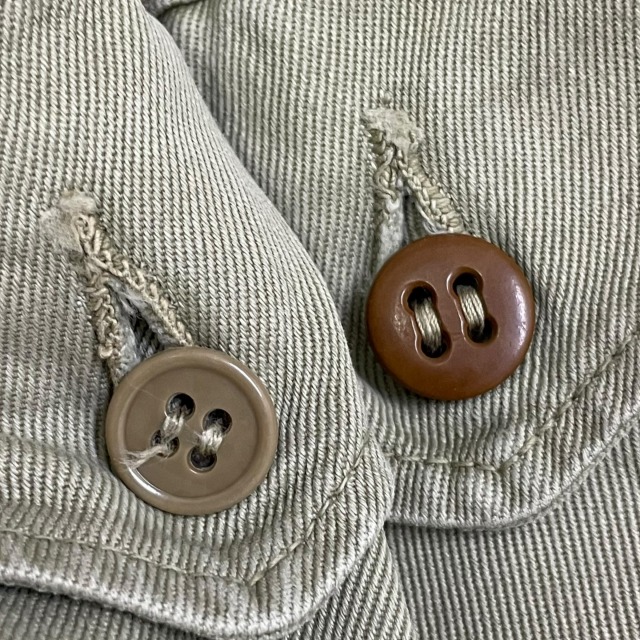 - 画像のように、スレ、小傷、薄汚れやわずかな汚れがあり、左ヒップポケットのボタンが交換されております。