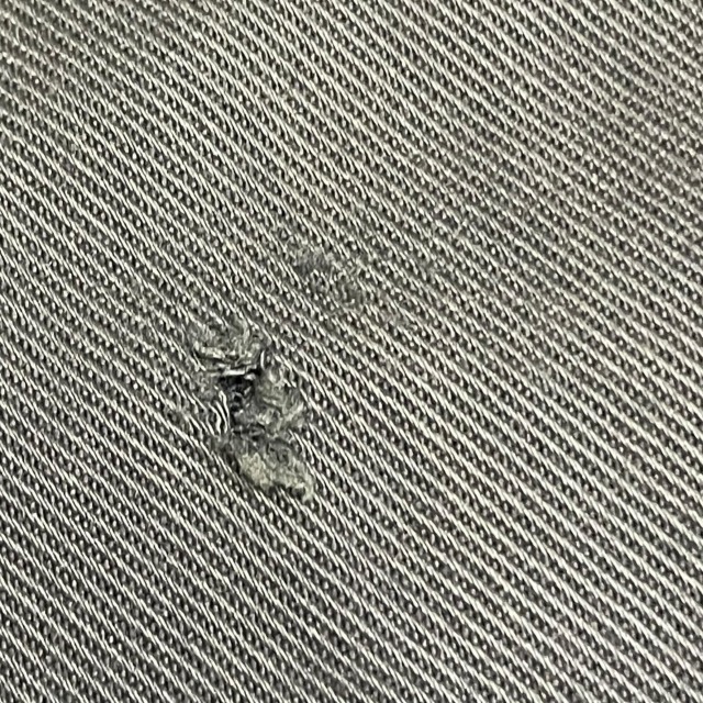 - 画像のように、スレ、キズ、汚れがあり、前左腿付近に穴がございます。