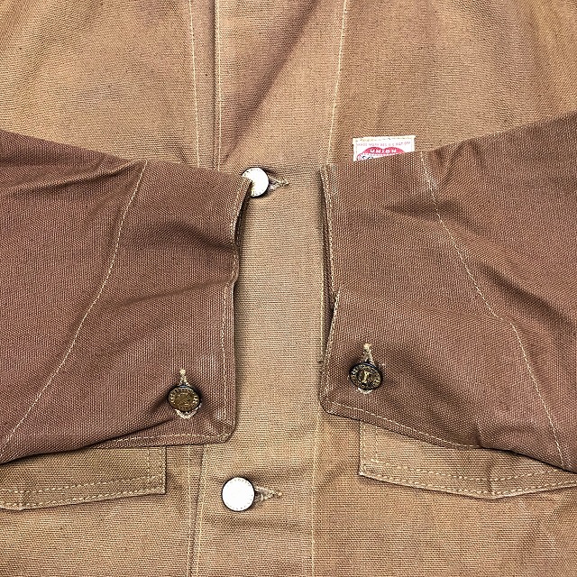 襟コーデュロイ、ボタンは社名刻印入りボタンです。