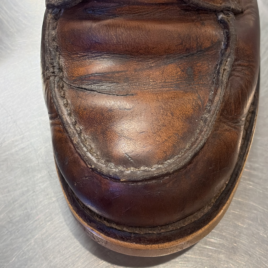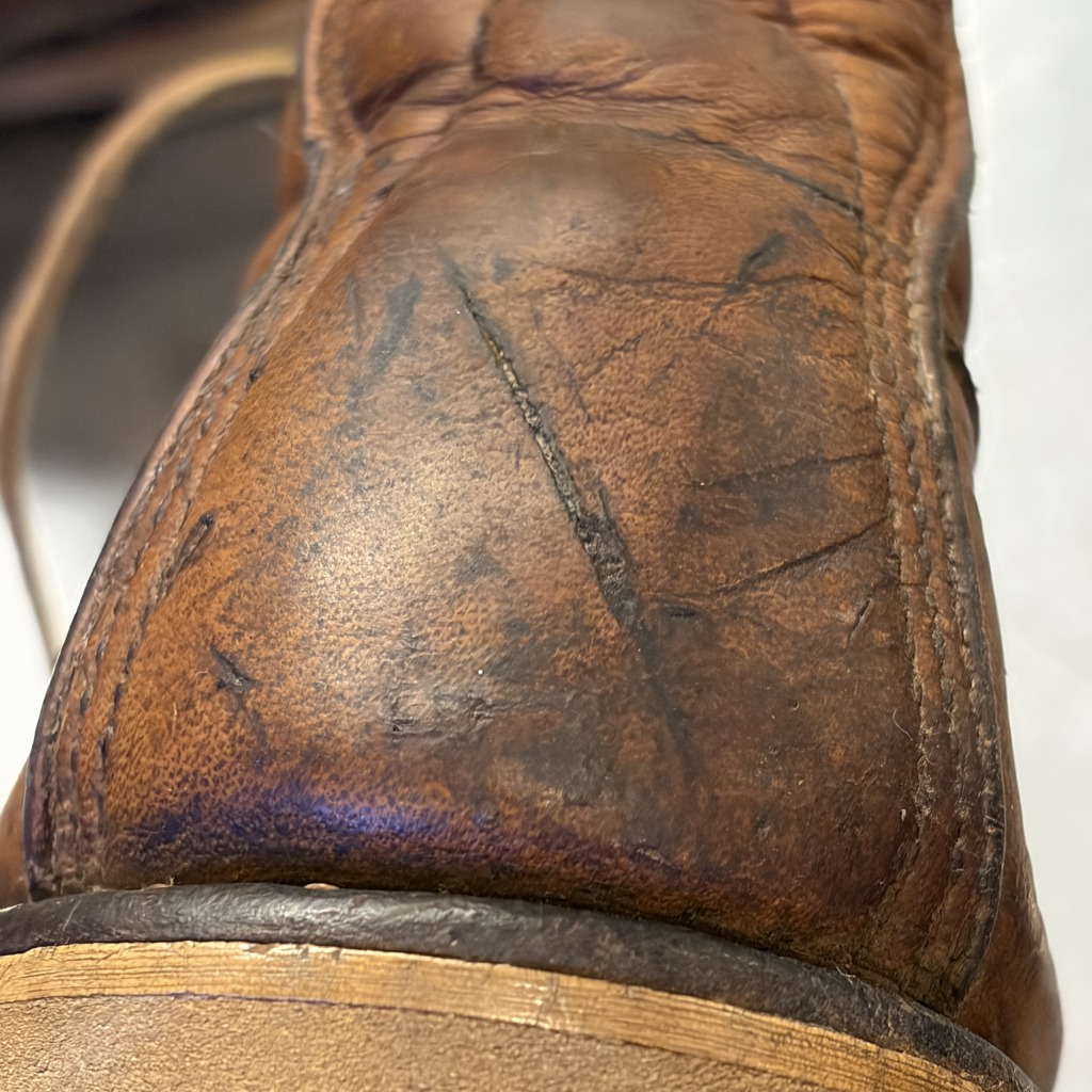 - 全体的に汚れやシミ、傷などのダメージ等があり全体的に着用感ございます。ソールサイドの割れや皮部分のべたつき、金具の錆等がございます。