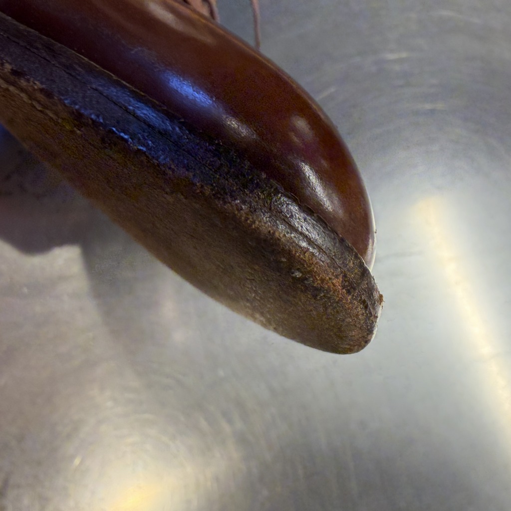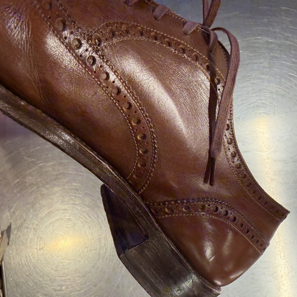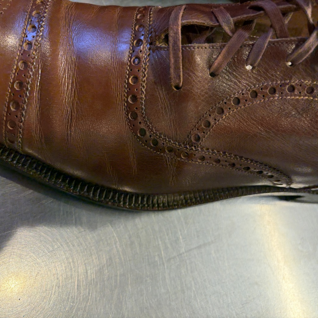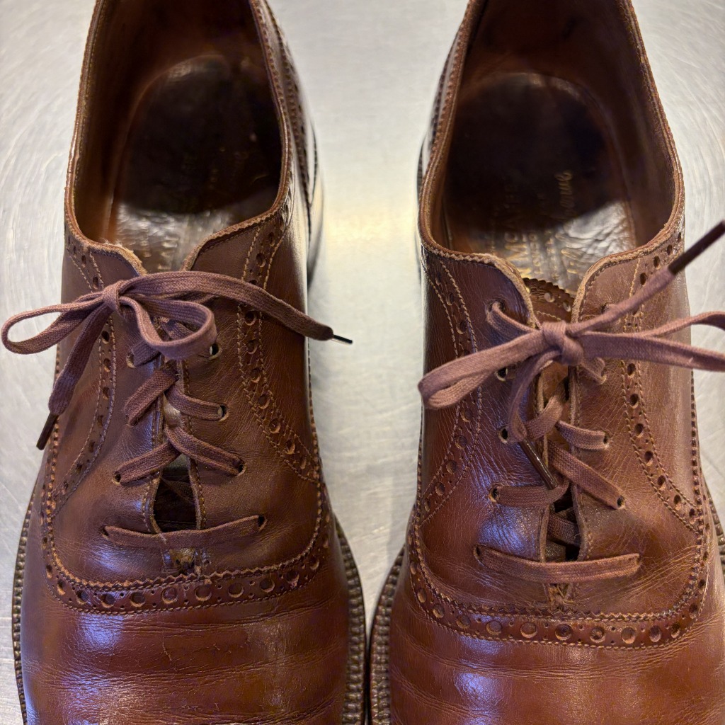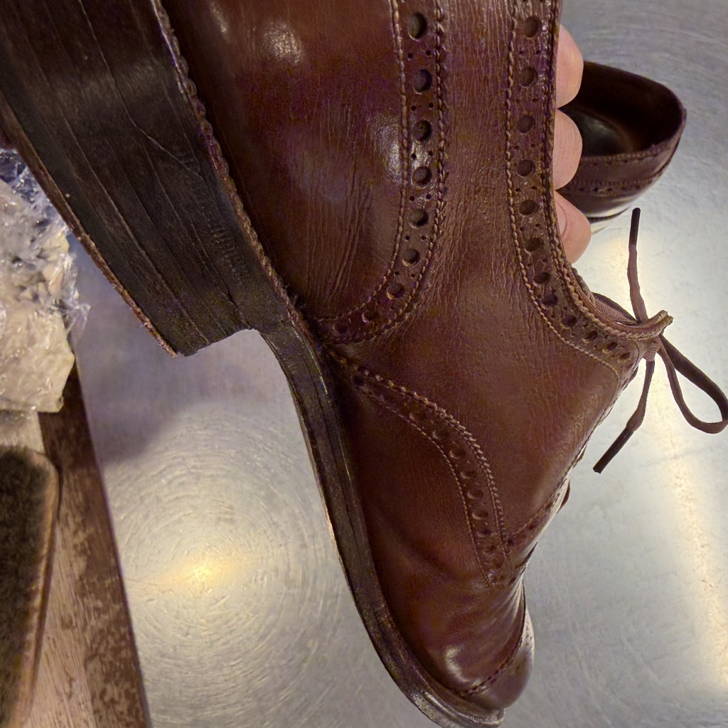 - 履きシワや、アウトソールやレザー部分等にダメージがあり全体的に着用感ございます。アウトソールのかかと部分の部品剥がれ等もございます。