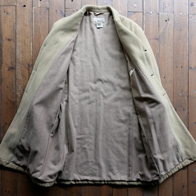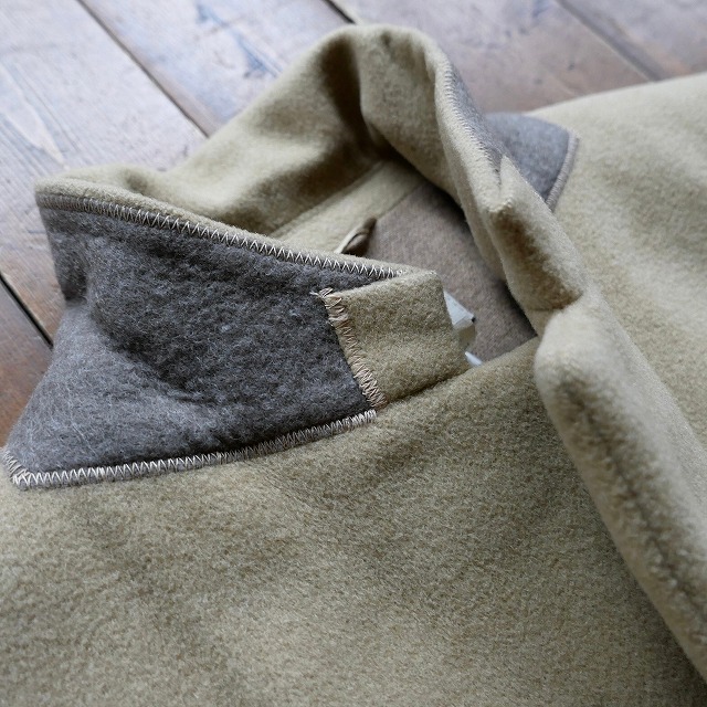 縫い合わせをサイドで合わせる事で非常に綺麗なショルダーライン、緩やかなAラインの洗練されたシルエット、ファブリックも上質で肉厚なウール生地を使用しており素材にも強いこだわりを持っている当ブランドならではの魅力が詰まった一着。