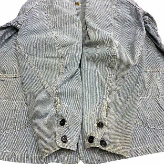91-Jデニムカバーオールに対し生地違いの96-Jピンストライプカバーオールです。