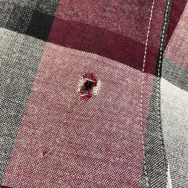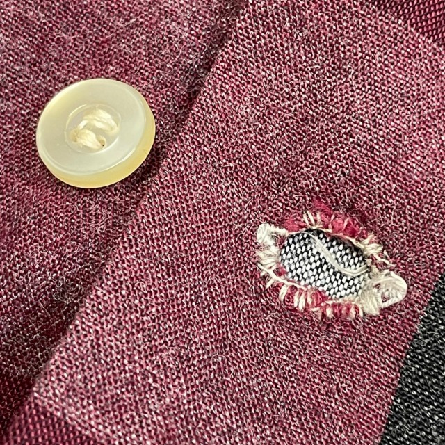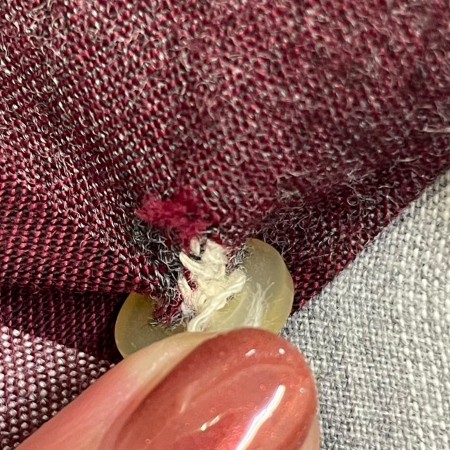 数ヶ所のボタンホールに手縫いで簡易的なお直しがあり、ボタン付け根の生地にダメージがございます。