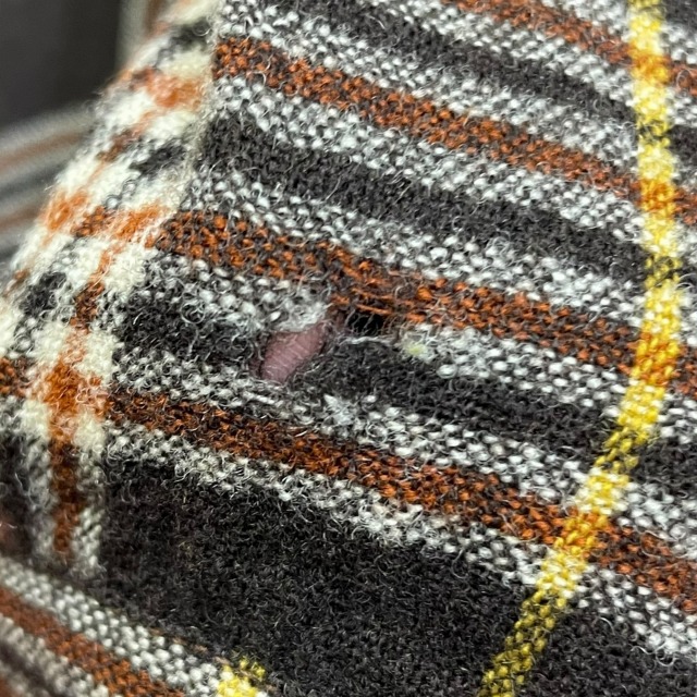 - 画像のように、左袖に穴がございます。